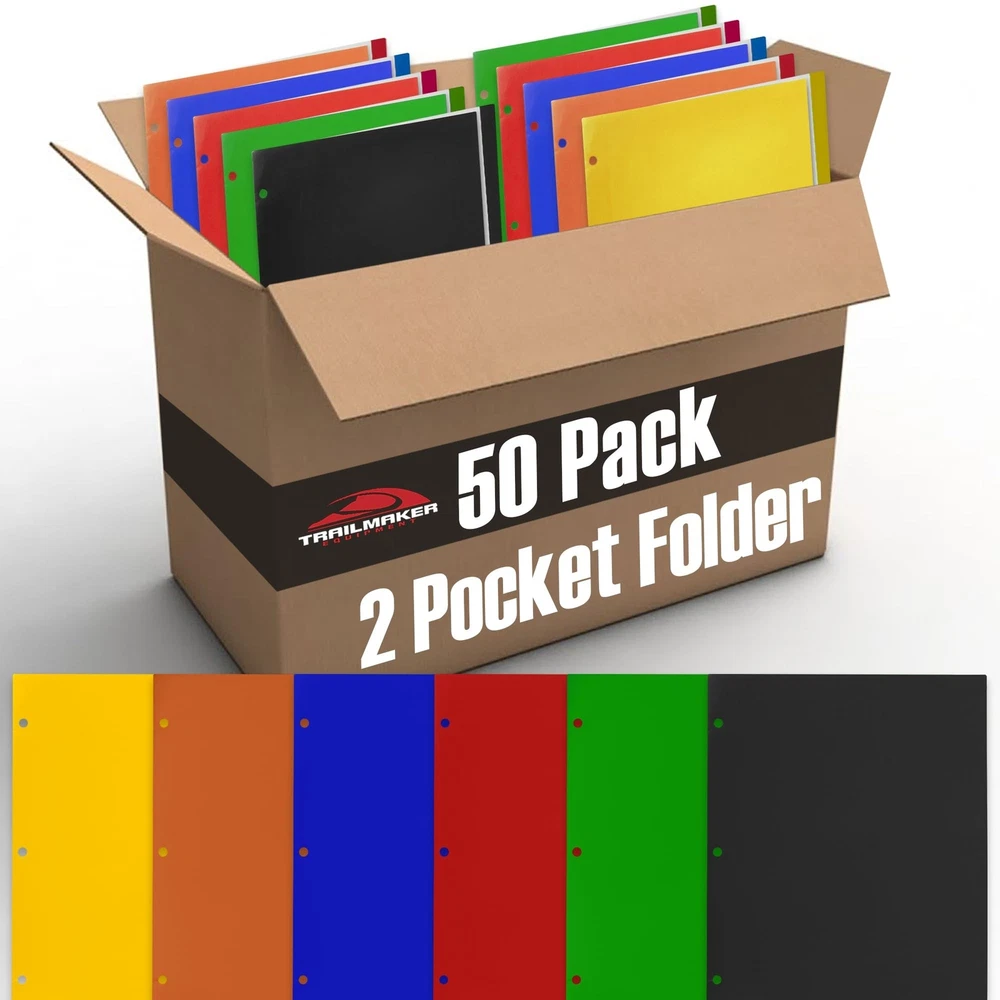 100 Pack of Bulk Colorful Paper Folders with Pockets - Wholesale Folders (100 Folders in 6 Colors) Product Details Color: 100 Folders in 6 Colors Brand: Trail maker MPN: SS87634 UPC: 089305587638 EAN: 0089305587638 Color: 100 Folders in 6 Colors Material: Paper Style: Classic Brand: Trail maker Sheet Size: Letter Manufacturer: AD Sutton Brand: Trail maker Item Weight: 8.73 pounds Product Dimensions: 9.75 x 11.75 x 0.5 inches Color: 100 Folders in 6 Colors Material Type: Paper Tab Cut: Straight Cut Tab Position: Top Sheet Size: Letter Manufacturer Part Number: SS87634 Date First Available: January 3, 2020 BULK FOLDERS WITH POCKETS: These bulk 2 pocket folders come in packs of 100 folders per bundle, and in an assortment of 6 fun colors, including red, black, green, yellow, blue, & orange PAPER FOLDERS: With pockets are durable, and have 2 pockets per folder to ensure your students or office staff stay organized. With a 3-hole punch, they can also be tucked easily into binders for easy carry & storage SCHOOL FOLDERS FOR KIDS: Heavy duty paper construction stands up to day to day wear & tear & rough use, & is much better for the environment than plastic COLORFUL RAINBOW FOLDERS: With pockets have 6 distinctive bright colors to keep kids & adults organized by subject, and done/not done sleeves WHOLESALE FOLDERS: For kids schoolwork or office work, easily store letter-sized paper documents. Standard size folders measure 9.5 x 11.5