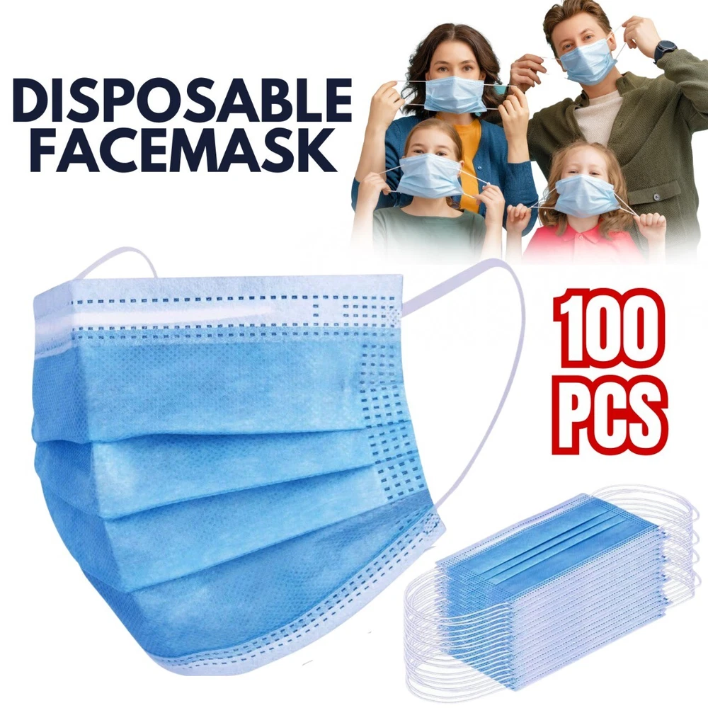Face Masks, Masks Disposable, 3 Layer Protection Blue Disposable Face Masks Non Medical Surgical Disposable 3Ply Earloop Mouth Cover for Adult & Teenager 100 PCS 3-Ply Face Masks For Adults [Pack of 100] Disposable Breathable Face Mask With Earloops- Comfortable Non-Woven Highly Protective Non Medical Face Cover For Men & Women