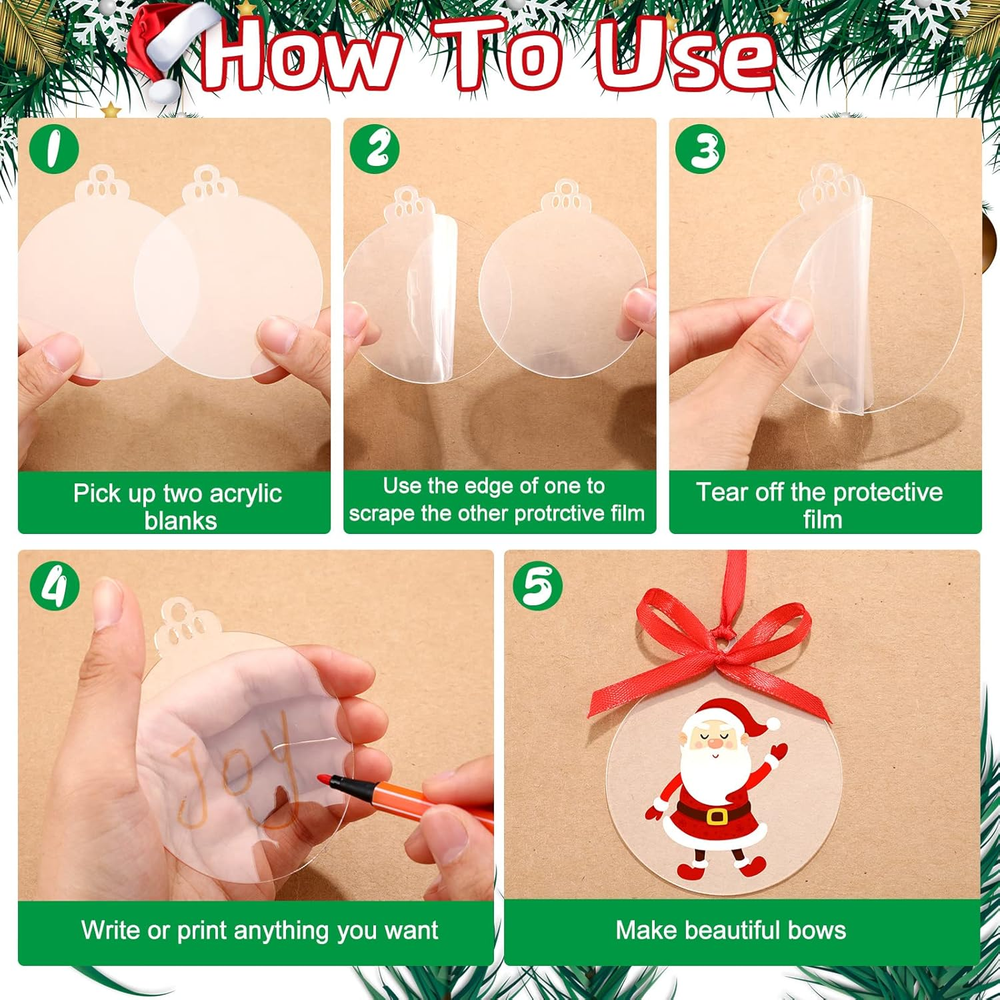 100 Pcs Christmas Clear Acrylic Ornament Blanks Bulk round Acrylic Discs Ornamen
