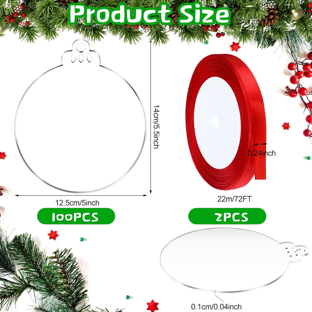 Included Components: Acrylic Christmas ornaments, Red ribbons Number of Pieces: 100 Is Customizable?: Yes Size: 5 Inch Color: Clear, Red gtin13: 744110957860 Package Quantity: 100 Scent Name: Unscented Occasion Type: Christmas Are Batteries Required: No Mounting Type: Hanging Brand: Does not apply Material: Polyester, Acrylic Theme: Christmas Type: Does not apply Unit Count: 1.0 Count Target Audience: Adult Style: Modern UPC: 744110957860 Shape: Round
