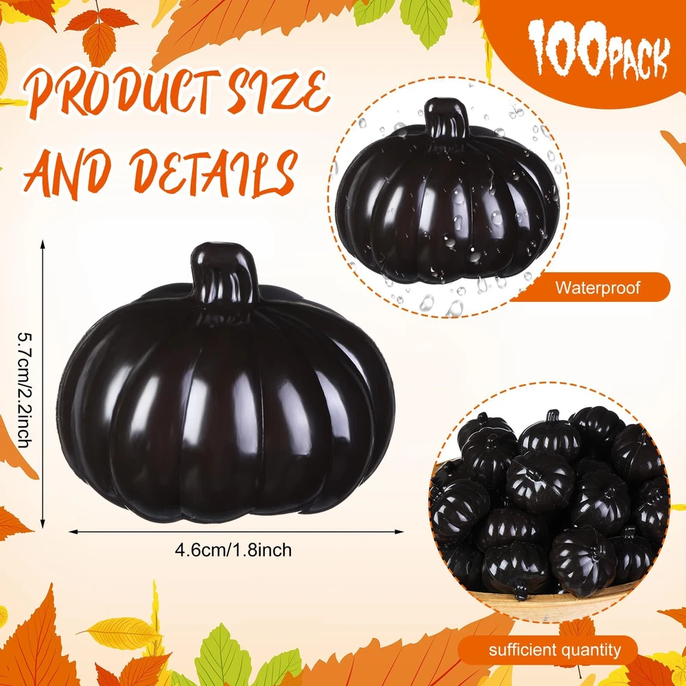 Features: Our fake decorative pumpkins boast lifelike detailing, making them a convincing alternative to the real thing. From the stylish shape to the stem details, these pumpkins aim to deliver the most realistic look. Looking for an unconventional yet thoughtful present? These charming and fun pumpkins fall decors make a delightful gift for those who love autumn or have an interest in interior decoration. Specifications: Material: plastic Color: black Size: about 1.38 x 1.18 inches/ 3.5 x 3 cm Package includes: 100 x Black pumpkins for decorating Notes: Manual measurement, please allow slight errors on size. The color may exist a slight difference due to different screen displays. Plentiful Quantity: this set includes 100 pieces of fall artificial pumpkins for outdoor, providing you with a substantial volume of cute mini pumpkins to spread around your home or workplace, this makes them a reasonable solution for your fall themed or Thanksgiving decorations Authentic Design: our fall plastic decorative pumpkins are designed to replicate the natural black color of real life pumpkins, adding an authentic touch to your fall decor; This vivid black color can create a warm and nostalgic ambiance for your holiday gatherings Ideal Size: our black pumpkins for decorating come in a mini size of approximately 1.38 x 1.18 inches/ 3.5 x 3 cm; This compact size makes them the ideal fit for your table centerpieces, fireplace mantels, or other places where space is a concern Material Durability: made from sturdy plastic, these fall mini pumpkins are designed to last, they're resistant to wear and tear, lightweight and portable, ensuring their vibrant color and charming appearance remain intact over time Versatile Applications: these fall mini pumpkin decorations offer versatility in terms of decoration, you can use these as coffee table decor, adorn your living room shelves, or even fill a glass jar for a creative display; And they're also available for DIY fall wreaths, rustic centerpieces, or holiday flower arrangements, you can also use them to decorate the table, backyard, garden, fall themed parties, weddings, celebrations, and more