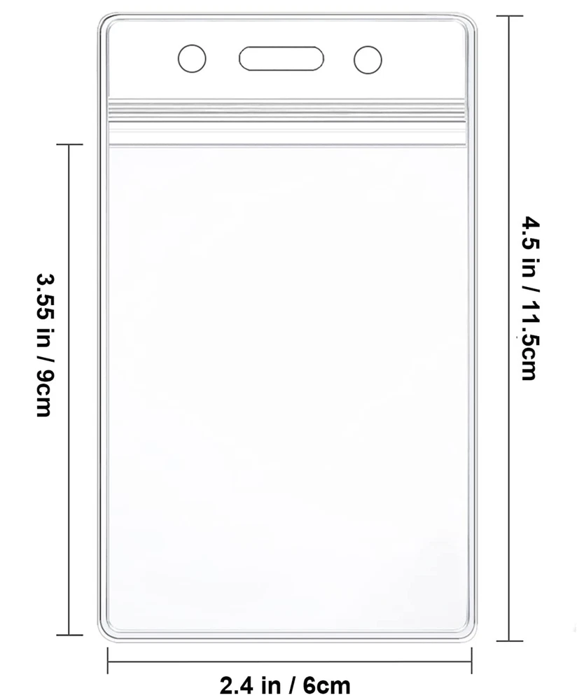 About This Item📏 Perfect Size for Standard Cards Each vertical badge holder measures 4.5 x 2.7 inches (115 x 68mm) with an inner size of 3.5 x 2.4 inches (90 x 60mm) . Ideal for driver’s licenses, employee badges, student IDs, access cards, and more. 💎 Durable & High-Transparency PVC Made from premium-quality PVC material, these badge holders are corrosion-resistant, abrasion-resistant, and built for long-term use. The clear design allows barcodes and QR codes to be scanned easily without removing the card. 💧 Waterproof & Secure Zipper Closure Features a strong resealable zipper to keep cards protected from water, dust, and moisture. Each holder can accommodate up to 5 cards , making it practical for multi-card use. Reusable zip closure ensures durability and convenience. 🔗 Versatile & Easy to Carry Compatible with lanyards, clips, and retractable badge reels. Easily attach to belts, bags, backpacks, purses, or pockets. Perfect for offices, factories, schools, conferences, exhibitions, events, and security access environments. 📦 Bulk Value – 100 Pack Includes 100 clear vertical badge holders , providing ample quantity for business use, events, schools, or large teams. Great for sharing with colleagues and staff.