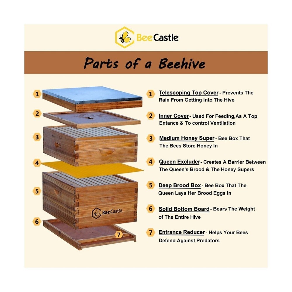 STORE NEW ARRIVALS ADD TO FAVORITE VIEW FEEDBACK Beeswax 100% 10-Frames Complete Includ... Hive Beehive Kit, BeeCastle Bee Coated Description BeeCastle 10-Frames Complete Beehive Kit, 100% Beeswax Coated Bee Hive Includes Beehive Frames and Beeswax Coated Foundation Sheet (2 Layer) Description Features: [Thicker and Full Beeswax Coating] - BeeCastle hives are fully soaked in the boiled beeswax(the beeswax deeply soaks into the wood to form a waxy coating), which makes BeeCastle Hives more durable and waterproof than other waxed beehives. Beekeepers no longer have to paint their bee hives, saving effort and convenience. [Superior Design]- This beehive has pre-cut dovetail joints and pre-drilled holes, which make assembly easier. The dovetail design is not only easy to assemble but also very tight fitting with stronger and longer support for the beehive box.The wooden frames of the bee hives also come with dovetails. [Durable and Safe Material]- Cedarwood material has a high level of stability, which prevents BeeCastle hives from shrinking, expanding, cracking or warping than other woods. Also, BeeCastle hives provide good insulation in the winter and rapid heat dissipation in the summer, which create a ventilated, comfortable and safe environment for your bees. [Standrad Size]- Deep Brood Bee Box (16-1/4 x 19-7/8 x 9-5/8) and Medium Super Boxes (16-1/4 x 19-7/8 x 6-5/8). This 10 frame beehive is a standard Langstroth beehive dimension. [Beehive Starter Kit]- This 10 frame bee hive starter kit includes Metal Top Cover, Inner Cover, Queen Excluder, Solid Bottom Board, Entrance Reducer, Screws and Nails for Assembly, 1 Medium Box, 1 Deep Box and 20pcs beehive frames and beeswaxed foundations. Product Details: Brand: BeeCastle Product Dimensions: 19.87"D x 16.25"W x 9.62"H Material: Metal, Pine Wood Style: Modern Assembly Required: Yes Product Dimensions: 23 x 19 x 9.5 inches Item Weight: 43.5 pounds Manufacturer: BeeCastle Delivery We Do Not Ship Outside of the Continental US. Return Policy All items qualify for returns within 30 days of receipt. Buyer is responsible for return shipping on any item that is not damaged. Feedback We take our reputation seriously, we buy and sell online, so we understand the value of trust. If you are unsatisfied with your order, please contact us and we will work with you to resolve it to your satisfaction. ABOUT US We offer the best prices around on high quality products. Our E-store includes media such as books, movies, music and games while offering electronics, toys, sporting apparel, clothing, tools, general home, garden items and more. SHIPPING We are always working hard to ensure your package arrives as soon as possible. Please understand that some factors like weather, high postal traffic, and the performance of shipping companies are outside of our control. For shipping outside of the continental USA, we only use eBay's Global Shipping Program.The item is shipped to KY and then sent to the rest of the world. International customers are responsible for all duties and taxes. Continue to check out in order to calculate costs for shipping the item to your country. Messages regarding eBay's Global Shipping Program MUST be directed at eBay EXCLUSIVELY. RETURNS We offer a 30-Day Return Policy on items which you are not completely satisfied with. You have the option for a full-refund or an exchange of the item. No returns are available on items shipped outside of the USA. CUSTOMER SATISFACTION We try our very best to make sure every customer is completely satisfied. If there's a problem, message us! We're happy to help. WE ACCEPT Copyright © 2021 AutoDS. | All Rights Reserved