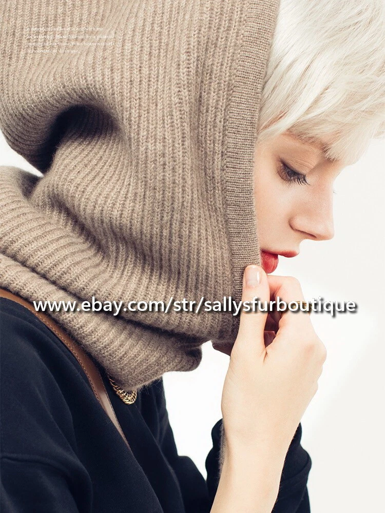 About Cashmere: Cashmere is a luxuriant wool that many a fashion-conscious woman has dreamed of wearing against her skin. Its silken feel, feather-light weight, and appreciable status make it highly desirable. It is the wool or fur of the Kashmir goat. 70% Kashmir goats in the world are raised in Inner Mongolia, China. Be wary of imitation cashmere. Often listings are stated as 100% cashmere, however are imitation cashmere, which does not have the special features of pure cashmere. Item description: Material: Pure cashmere, made in inner Mongolia. Size: 48cm High x 30cm Wide Lay flat Process: Double worsted twisted woven. Weight: 125 gram.
