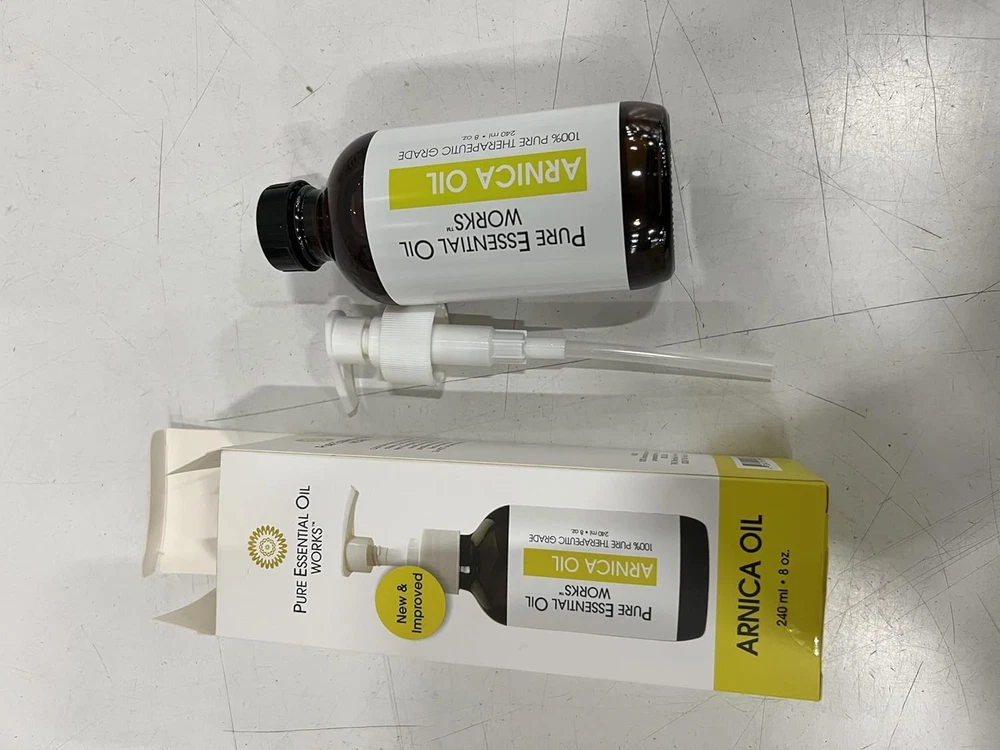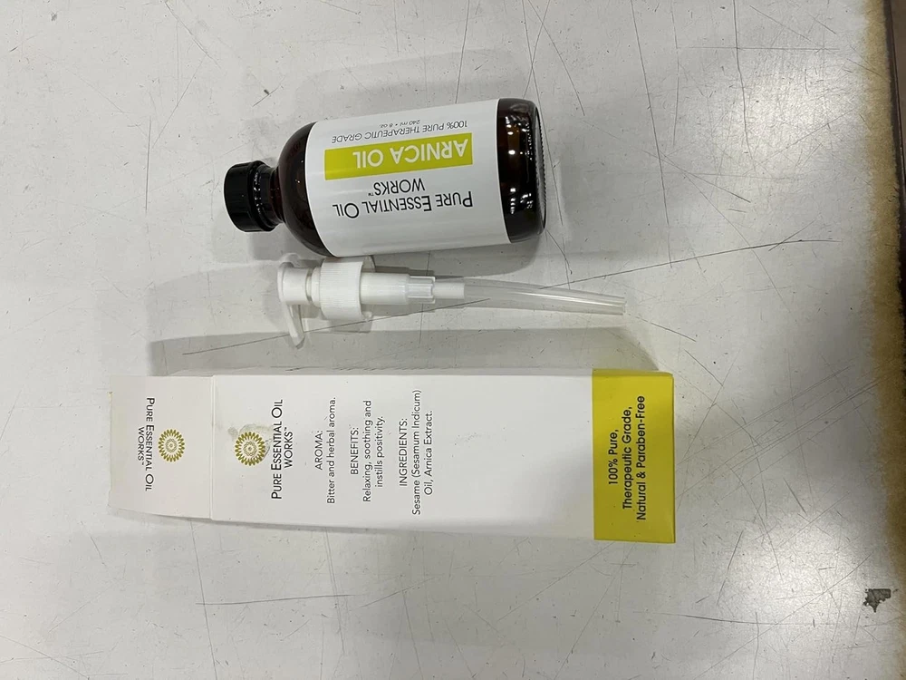 Arnica Oil, 100% Pure, Natural, Paraben-Free, 8 Ounces Product Details Product Dimensions : 2.4 x 2.4 x 5.6 inches; 8 ounces Manufacturer : TNG Worldwide Country of Origin : India Brand: Pure Essential Oil Works Scent: Arnica Oil Item Form: Oil Material Feature: Natural Number of Items: 1 Pure Essential Oil Works Arnica Oil is perfect to use after a busy day or a strenuous workout, and can also be used as a daily skin softener. All-Natural Arnica Oil: Paraben-free. Grade Oil: This paraben-free oil can be used in any shampoo, conditioner, body wash, bath gel or other skin care product. It is a oil that relaxes, soothes and instills positivity. Massage Oil: Arnica Oil captures the natural soothing essence of Arnica & can be used as a massage oil. It has to be diluted with any of your favorite essential oils prior to massaging into skin. Arnica Oil Aroma: This natural Arnica Oil has a bitter and herbal aroma. It is easily absorbed, non-greasy & doesn’t clog pores.