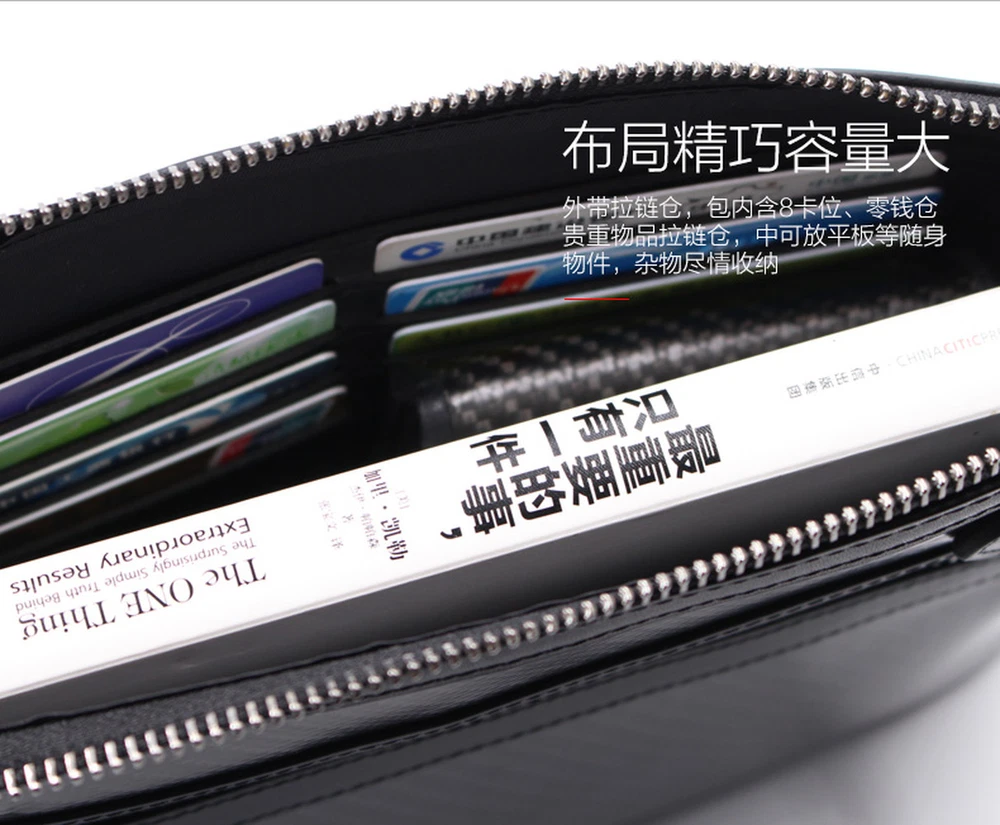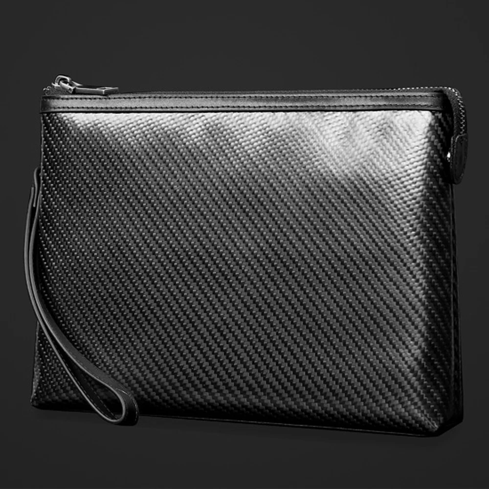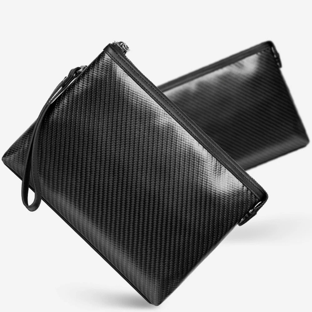 Feature 100% BRAND NEW Carbon Fibar Bag Made of carbon fiber and genuine leather materials. Style: Clutch Color: Black Size: 26.5cm (Length) x 18cm (Width) x 4cm (Thickness) Inner cowhide, soft and delicate texture After getting it,you will find that it is so worthy 100% high quality guarantee. Would be a very useful stuff in your pocket. Brand-new item as picture and in good condition. It is a good gift for your lover, family, friend and coworkers. PU Leather Bag Unique design: layered and reasonably placed multiple items, easy to carry all everyday items, smartphones, ID cards, credit cards, cash, keys, headsets, driver's licenses, mini power supplies, etc. Convenient wrist strap: There is a wrist strap on the back of the handbag, so you can slide your hand at any time to better grasp the handbag. Makes you feel safer and more comfortable. Material: The men's clutch is made of high quality PU leather. The quality of the leather is very good and it is gorgeous. Fashion and business: The clutch is ideal for all occasions, business and leisure. No matter how the fashion style changes, our quality and craftsmanship will always pursue fashion. The perfect gift: The men's handbag is the perfect gift for friends, fathers and brothers. It also applies to birthdays, Christmas, anniversaries, Father's Day, Valentine's Day and other special occas Size: 21*11*4 cm Package included: 1 Bag