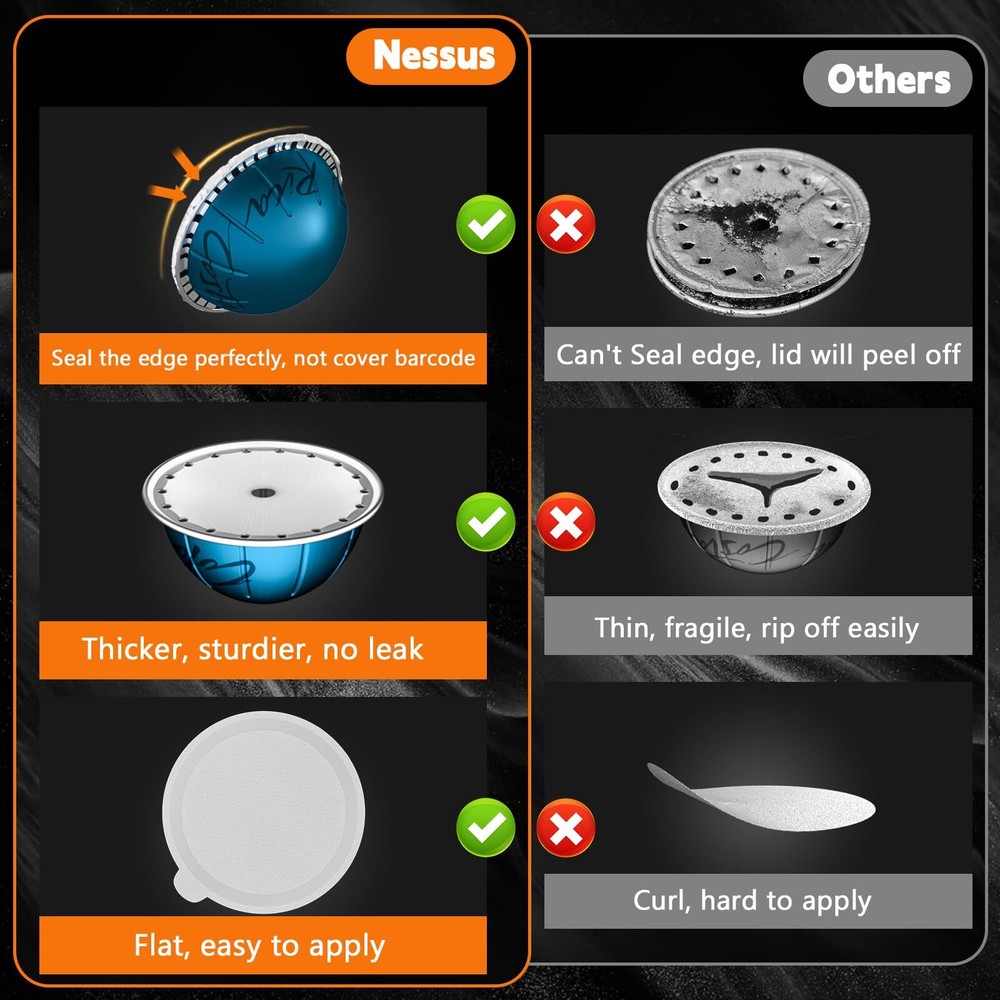 Aluminum Foil Lids for Nespresso Vertuo Reusable Pods, 100 PCS Foil Seal Cover for Refill Espresso Coffee Capsule, Compatible with Nespresso Refillable Capsule PERFECT SIZE & ADHESION: Say goodbye to foil waste, weak coffee, and machine damage caused by ill-fitting seals. foil lids easily position reusable vertuo pods without covering the barcode. Plus, they feature food-grade adhesion that keeps your pods airtight and well-sealed, so you can prefill them and enjoy fresh coffee anytime. SAVE YOUR MONEY: Specially designed for Nespresso pods vertuo, 100pcs foil seal lids help you easily refill and reuse your vertuo pods, saving money and reducing waste, providing convenience and high efficiency for your coffee life. EASY TO REFILL: Refilling your vertuo reusable pods with the refillable pods kit is simple and hassle-free. Just put the empty capsule into the holder, add your favorite coffee powder, and use the foils to align with the raised edge of the holder. Then, press the top cover to get a new capsule. UNLOCK ENDLESS POSSIBILITIES: Unlike being limited to a small variety of coffee blends, Aluminum foil covers give you the ability to select the coffee of your choice. Whether it's your morning fuel or a relaxing moment shared with friends, Foil Lids for Nesprsesso reusable pods cater to your pursuit of coffee excellence, which make excellent gifts for coffee lovers. 100% SATISFACTION: Whether you seek the perfect flavor or long-term protection for Nespresso vertuo machine, aluminum foil seals will be your ideal choice. By choosing our refillable pods seals Lid, you can achieve a win-win situation in terms of saving money and being environmentally friendly. Shipping We offer FREE shipping on all orders! We ship within Three business days of payment, usually sooner. We use a selection of shipping services such as UPS, FedEx, USPS etc. We only ship to the lower 48 states, no APO/FPO addresses or PO Boxes allowed. Local pickups and combined shipping options are not provided at this time. Return You can return a product for up to 30 days from the date you purchased it. Any product you return must be in the same condition you received it and in the original packaging. Please keep the receipt. Payment We accept payment by any of the following methods: PayPal Please pay as soon as possible after winning an auction, as that will allow us to post your item to you sooner! Feedback Customer satisfaction is very important to us. If you have any problem with your order, please contact us and we will do our best to make you satisfied. Contact Us If you have any queries, please contact us via ebay. We usually respond within 24 hours on weekdays. Please visit our eBay store to check out other items for sale! Thank you for shopping at our store.