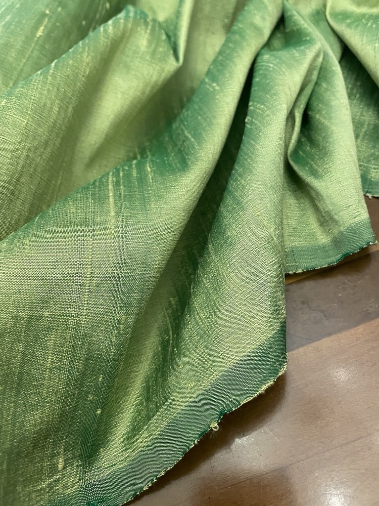 Our premium hand woven 100% Pure Raw Silk Dupion has a unique slubbed appearance characteristic to the fabric, due to the way its made. Silk Dupion is often used for formal wear, such as ballgowns and bridesmaid dresses but also very popular in home furnishings, embroidery, quilting and more. Please note that our Silk Dupion is of 100% pure Silk composition and Not of mixed fibres with Polyester, as such these alternative mixed fibre shantung's or dupionis are cheaper.