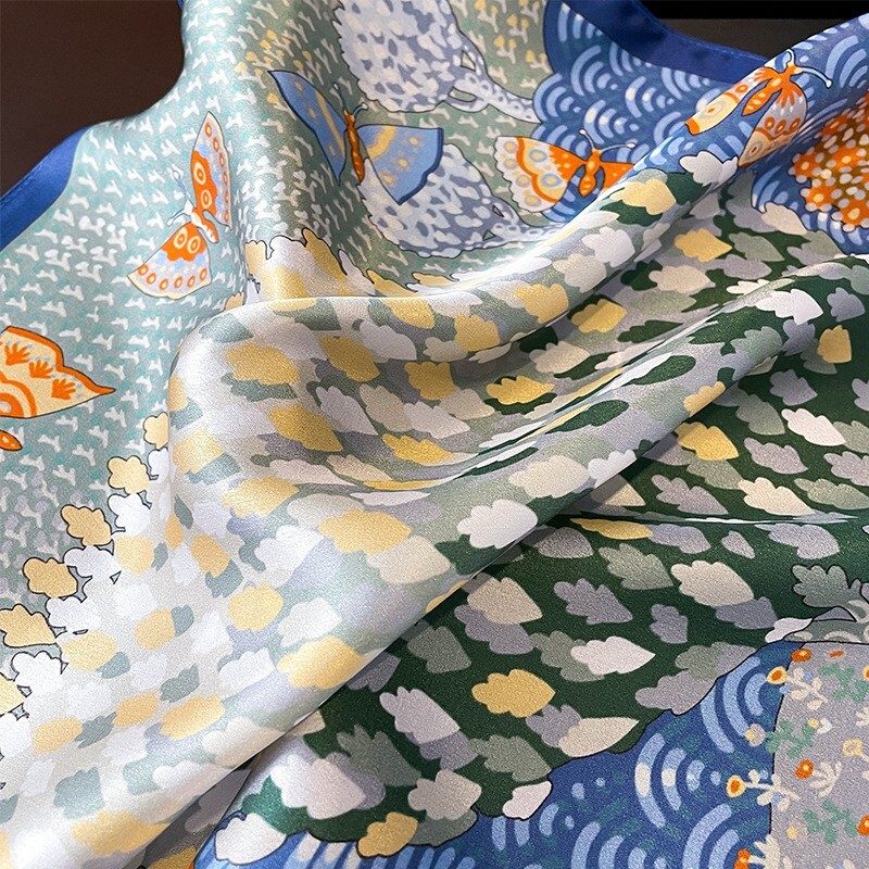 100% mulberry silk green horse print square scarf shawl 140x140cm luxury accessory