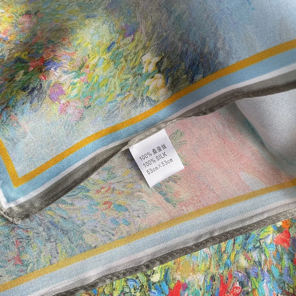 Color: Green Season: Fall, Spring, Summer, Winter Style: Square Scarf gtin13: Does Not Apply Fabric Type: Satin Type: Scarf Vintage: Yes Accents: Printed Character: 100% Mulberry Silk Country/Region of Manufacture: China Theme: Art Pattern: Oil Paiting UPC: Does Not Apply Features: Multifunctional, Neck Warmer Department: Women Brand: Unbranded Material: Silk