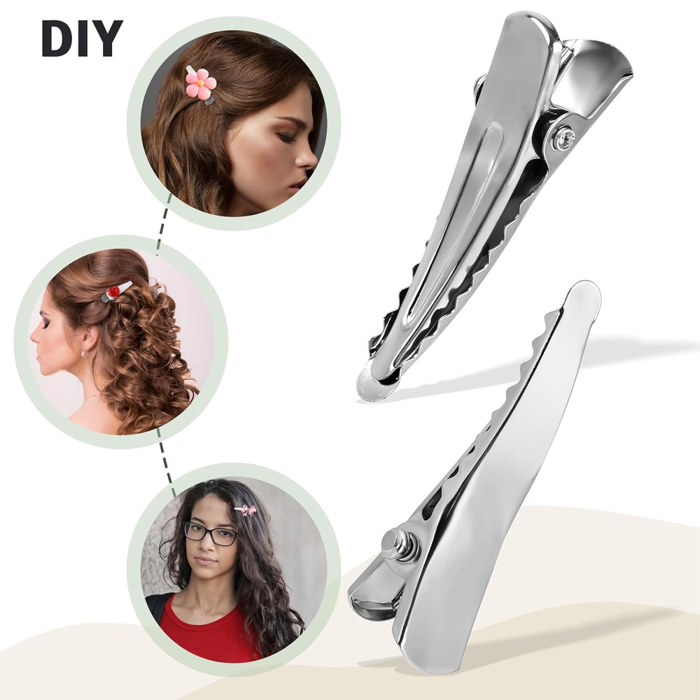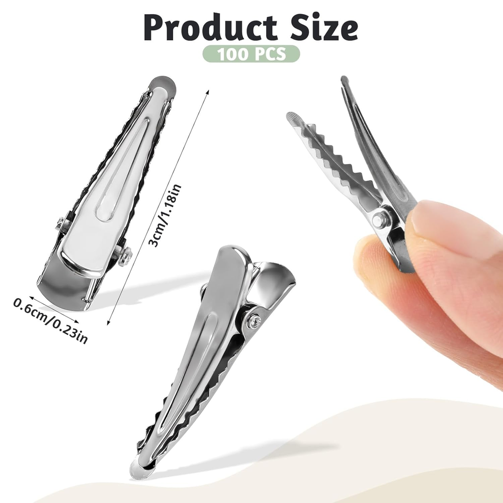 100 Silver Metal Alligator Hair Clips for Styling 1.5 Inch
