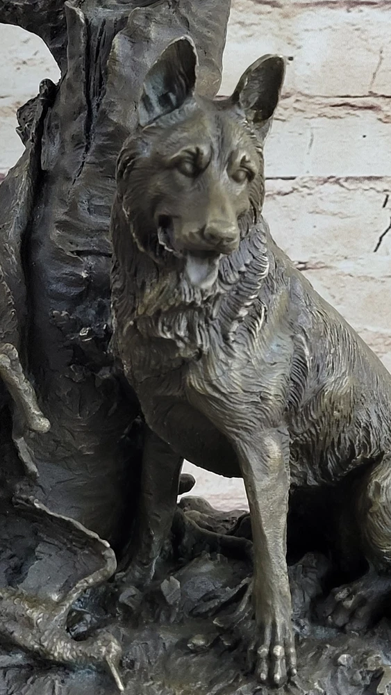 100% Solid Bronze Sculpture Statue Hunting Dogs English Bulldog Shepherd DEAL 100% Solid Bronze Sculpture Statue Hunting Dogs English Bulldog Shepherd DEAL Condition : This sculpture is in perfect condition. Bronze Dimensions with Marble Base: Height 12" X Width 12" Marble Dimensions: Diameter 12" Height without base:11" Weight:25 LBS Inventory:84Y4105248 Immerse yourself in the intensity of the hunt with this captivating bronze sculpture featuring two formidable hunting dogs, a Pitbull and a German Shepherd. Positioned next to a lifeless rabbit and bird, these loyal companions gaze ahead with unwavering focus, ready to execute their owner's command. The scene is set amidst a forest, skillfully portrayed through the inclusion of a tree stump and branches, lending a sense of atmosphere to this remarkable piece. Crafted with meticulous attention to detail, this sculpture exemplifies the artistry of the skilled artisan. Through the ancient technique of lost wax casting, employed for thousands of years, every intricate aspect of the piece is brought to life. From the texture of the creatures' fur and feathers to the nuanced expressions on the dogs' faces, this sculpture is a testament to the beauty and precision that can be achieved through this timeless method. Whether you are a hunter yourself or an animal lover, this exquisite bronze sculpture is a fitting addition to your business or home. It serves as a tribute to the strength, loyalty, and instinctual prowess of hunting dogs. With its grace and beauty, this sculpture makes an exceptional gift for those who appreciate the bond between humans and their animal companions, and the thrill of the chase. HUNTING DOGS ENGLISH BULLDOG SHEPHERD BRONZE SCULPTURE FIGURINE MARBLE BASE DECO www.bronzhaus.com Video will open in a new window Using the eBay App? Paste link into a browser window: [isdntekvideo] Shipping Terms : Most of our items are shipped via USPS (United States Postal Service) mail or UPS. Most orders are shipped within 24-48 hours of purchase. Please be aware that not all items are available for USPS shipping due to size and weight. We do ship to Hawaii, Alaska, Canada, Puerto Rico, APO/AE, and U.S. Virgin Islands, however, an additional charge may be required. Please contact us before making any purchases in these areas. For Non-USA customers, you may be responsible for all duty, tax, brokerage fees that may be due upon delivery (shipping costs cover freight charges only). We also ship internationally. Please refer to the "Shipping and Handling" chart for the rates for each area. Payment : We accept just about any form of payment. PayPal, Master Card, Visa or American Express credit cards. Money orders, cashiers checks, and even personal or business checks. For governmental institutions, we will also accept a purchase order. Please understand that for personal or business checks we have to wait for the check to clear (usually 7 days) before shipping. Condition : New Detailed Hand Crafted Hot Cast Bronze Satisfaction Guaranteed. This is Stock Photo, Slight Color Variation!! Listing and template services provided by inkFrog