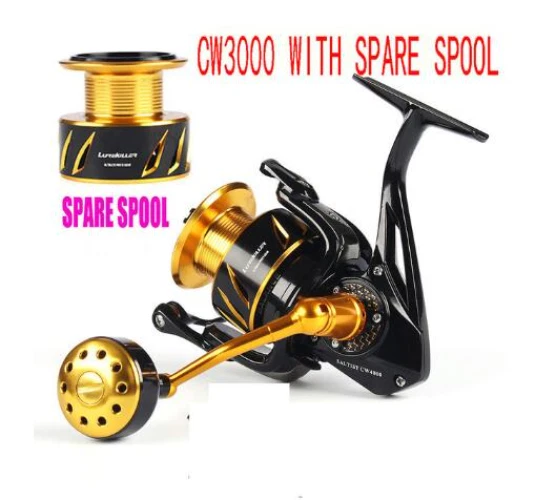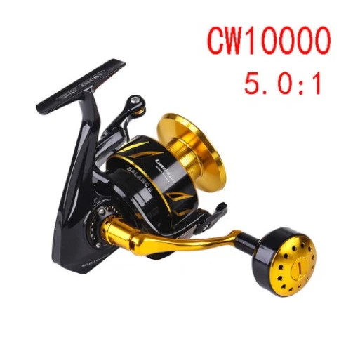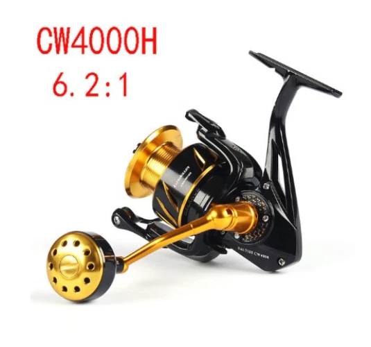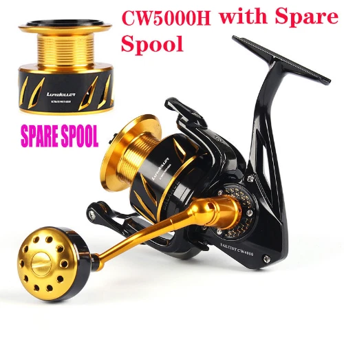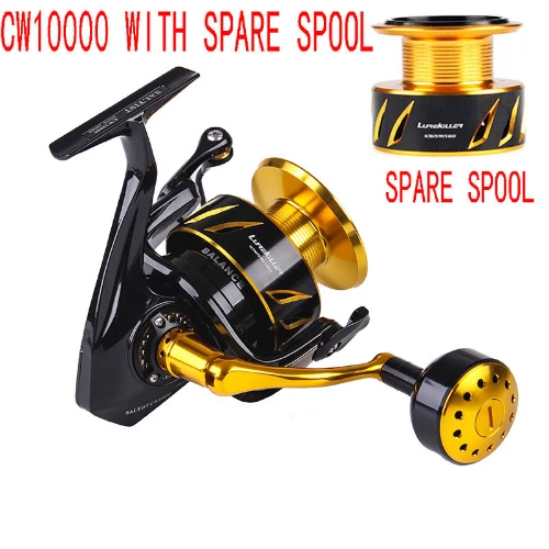 NEW LUREKILLER SALTIST CW10000 Series Made in Japan Spinning/Jigging Fishing Reel 35kgs drag power. Color: Gold, Black Features: Corrosion Proof Marine Grade Alloy Alloytex Body 100% Fully Sealed Ratio 5.0:1 (High Speed) 10 Double Sealed SX Stainless Steel Ball Bearings High Tech Stainless Steel Gears Removable High Tech CNC Ported Gold Alloy Spool With Drainage Ports Permanent One-way Large Bearing Construction Solid 5mm Alloy Bail Arm with Air Bail Brass Pinion,Oscillation,Drive Gears 10 Fully Sealed Sets Of Stainless/Hypatex Carbon Drag Anti-Friction System 1 Piece Re-enforced Screw Stainless Steel Sports Combat Handle with Gear System Lubrication Point Instant Stainless Anti Reverse Gear System New Pro-SX 316 Alloy Marine Grade Metal Components High Tech Ball Bearing Aluminum Spool Left/Right Interchangeable Waterproof Marine Grade 316 Alloy handle Threadline/Spinning/Jigging Reel Smooth Micro Adjustable Sealed Click Drag Premium quality fit and finish