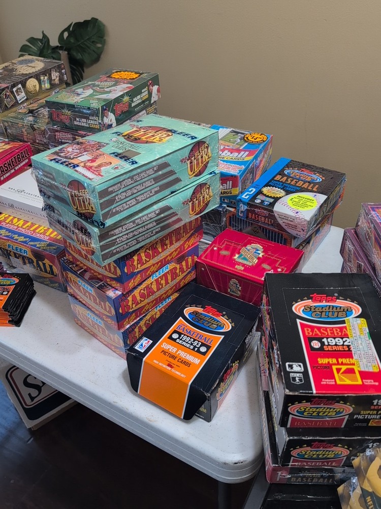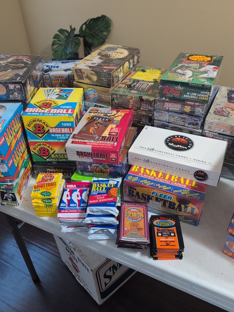 1 lot contains roughly 100 cards from unopened packs. Usually 1-2 packs from each of the major sports. All packs are from the late 80's to the early 2000s from all the major brands like Topps,Donruss, upperdeck, stadium club, Hoops, fleer, Bowman and many more. You will also receive a 10 card loose lot of HOFers as a bonus.