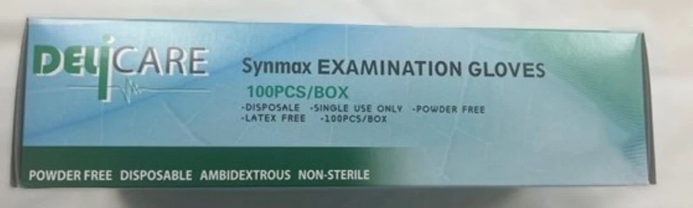 UPC: Does not apply Powdering: Powder-Free Brand: DeliCARE Size: Medium Material: Vinyl Modified Item: No MPN: Does Not Apply gtin13: Does not apply Intended Use/Discipline: Cosmetology, Dental Laboratory, Dentistry Model: Synmax 1002 Custom Bundle: No Country/Region of Manufacture: China Color: Blue