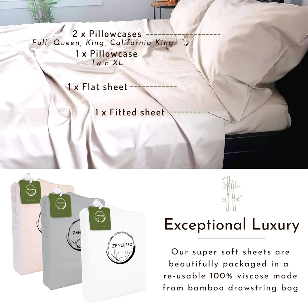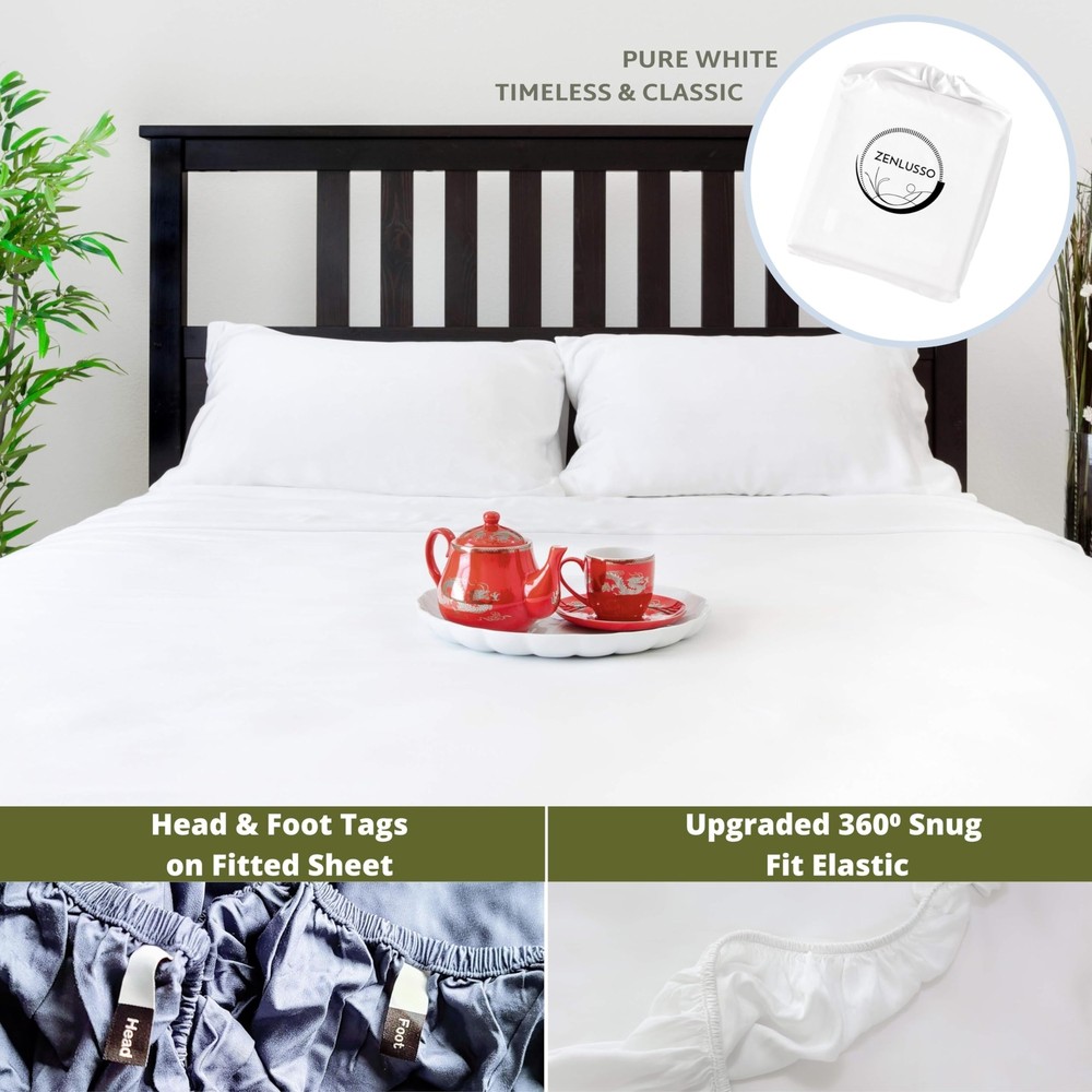 King Sheets, 100% Viscose Made from Bamboo Sheet Set, Cooling, Head Foot Tags with 16” Deep Pocket, Luxuriously Soft 4 Piece Bed Sheet Set (White, King) 100% Viscose made from Bamboo: Made with the highest grade, 300TC organically grown 100% Viscose made from Bamboo fibers – Not blended with any other material. We only use single ply yarn for ultimate comfort and durability. OEKO-TEX STANDARD 100 CERTIFIED PREMIUM QUALITY: Head and Foot Tags on fitted sheet. Made with premium durable single ply yarn. All-round upgraded elastic on fitted sheets with deep pockets to fit up to a 16” mattress. Envelope covers on pillowcases secures the pillow without it falling out. LUXURIOUSLY SOFT: resort quality 100% Viscose made from Bamboo sheets are incredibly soft and cooling. They come packed beautifully in a reusable drawstring bag which can be used to store linen and is perfect for gifting. STANDARDS: OEKTO-TEX Standard 100 Certified and made in a BSCI audited facility. Customer satisfaction guaranteed - If you have any issues or questions, simply let us know and we will ensure they are resolved. Includes 1 Flat Sheet 110"x104", 1 Fitted Sheet 78"x80" with Head Foot Tags and 16" pocket depth, 2 King pillowcases measuring 20"x40" MELT INTO THE MOST BREATHABLE, SOFTEST, LUXURIOUS SHEETS EVER: Made with 300 thread count 100% Viscose made from Bamboo with premium single ply long-staple yarn for maximum softness, quality and durability. OEKO-TEX CERTIFIED STANDARD 100 CERTIFIED. PREMIUM QUALITY, RESPONSIBLY MADE: Manufactured in a BSCI audited facility to ensure fair employee wages and working conditions. SUPER SOFT LIKE SLEEPING ON A CLOUD: bedding is machine washable and tumble dry safe. PERFECT FOR GIFTING: sheets come packed beautifully in a reusable drawstring bag that can be used to store your linen or other items. SHIPPING Domestic Buyers - We ship within 3 business days of payment, usually sooner - We offer FREE shipping on all orders! - We only ship to the lower 48 states, no APO/FPO addresses or PO Boxes allowed - We have confidence in our products, but if you are not fully satisfied please contact us within 30 days of purchase and you will get full refund. International buyers – please note: Import duties, taxes, and charges aren't included in the item price or postage cost. These charges are the buyer's responsibility. - Please check with your country's customs office to determine what these additional costs will be prior to bidding or buying. Return Policy - This product comes with 30-Days Money Back Guarantee. - If you receive an item and it doesn't work properly or you don't like it because of any reason at all, - we have a 100% refund/return policy. We will ship you a new item or refund your money for the full sale amount. - For all returned products, buyers MUST contact us for the returning address. * Order Cancellation Policy ** You can return a product for up to 30 days from the date you purchased it. 1. The seller reserves the right to cancel the special case only due to eBay cancellation fee. 2. The decision of seller is the final. 3. The seller will respond to the cancellation request within 2 business days. Please wait for the result of cancellation. 4. In case the cancellation is not completed by some reasons, the buyer can follow the options below to get the refund. 4.1 The buyer can reject the item when it arrives. 4.2 The buyer can send the item back to the seller within 30 days If the buyer receives item (USA Shipment ONLY). The seller will provide the FREE return label to the buyer when the buyer opens " Return Item" case on eBay by using the reason as "Change my mind" ONLY. 5. When buyer has placed the order. The order will be processed and completed by automatic warehouse system within 5 minutes. In case that buyer sends the cancellation request after 5 minutes of placing the order, the request will be rejected. **Sending direct message to cancel the order is not allowed for every case.* Return Policy For the return case - If buyer would like to return the items for refund or replacement, please CONTACT SELLER to receive the free return label from seller. The refund or replacement will be processed with the tracking number of return label which is provided by seller only. The other ways of return which are not approved by seller will not be processed for the refund or replacement.