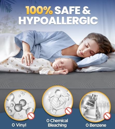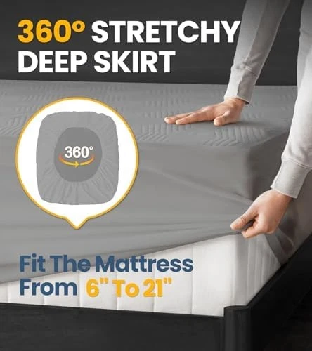 Mattress Protector ππππππ ππππππππππ: Enhance the TPU backing from 15ΞΌm to 20ΞΌm for 2X superior waterproof performance than others in the market. Keeps any liquids or dust off your mattress and prevents them from penetrating the cover. πππ π & ππππ ππππ πππππππππ: Made of 25% bamboo viscose and 75% polyester with 0 vinyl, 0 benzene and 0 chemical bleach under the OEKO-TEX STANDARD 100. Sleep confidently in a safe haven. πππ π & ππππππ: Experience ultimate ultra-soft comfort when you sleep directly on this mattress protector. It remains quiet and steady to ensure a peaceful night's sleep even through restless nights. πππππππ ππππππππ & ππππππ πππ π πππππππ: Thanks to our US PATENTED compound adhesive. this mattress cover withstands 500+ machine wash cycles, surpassing other brands' averages of 150-200. And it supports low-temp tumble dry under 122β. Effortless maintenance for lasting freshness! ππππππ π ππ: Fitted sheet style with an 18" stretchy pocket, accommodating mattresses from 6" to 21" in height. ππππππ-π πππ πππππππ: 10-Year super long warranty. Refund or replacements for any product issues without the need to return. Response in 24H after your contact.