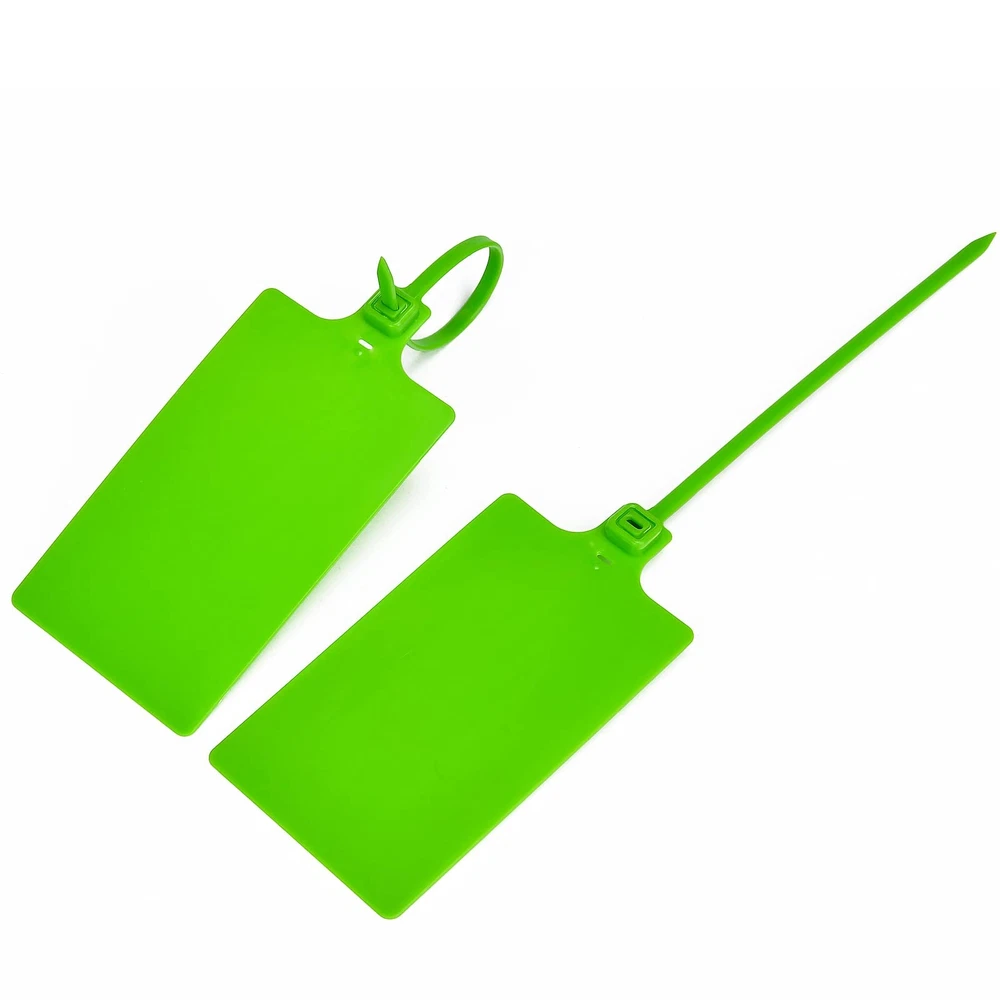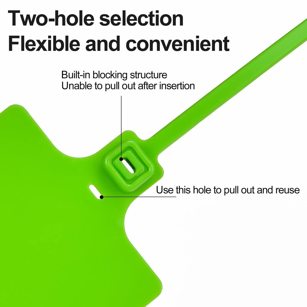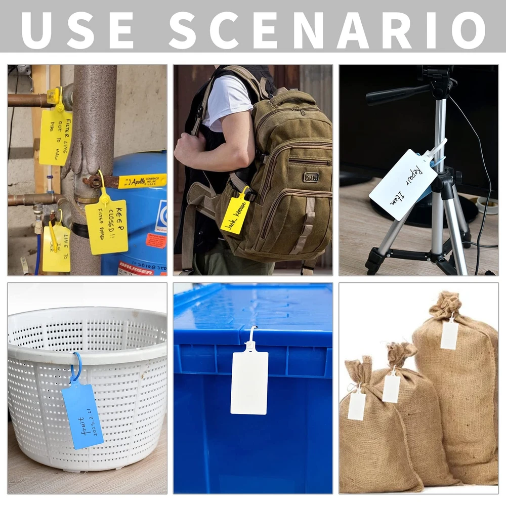 【Size】: Plastic label tag with hole, size: 60 x 100 mm(2.36 x 3.94 inches), available locking length is 137mm(5.4 inches), overall length is 250mm(10 inches). 【High Quality】: Made of new PP material, sturdy, wind, water proof and weather proof, not easy to break or wear, plastic seals shipping tags can withstand wind, rain, heat, icy cold, chemical and electricity. It can be used indoor and outdoor. 【Double lock design】: The identification tags design with 2 holes, single-use hole and reuse hole. The single-use hole can be self-locking for a tamper proof security seal, it cannot be pulled out once locked. The reuse hole can be applied many times. You can use two holes plastic tags according to your needs. 【Large label tags】: The large blank labeling tags have enough space to paste adhesive label or write on them, come with a permanent marker pen. You can use it to identify horse blankets, instrument cases, water main shutoff, gas shutoff, sprinkler shutoff, tools, or other products, won't FALL off. 【Wide application】: The self locking ties tag can be used as a shipping tag, classification tag, commodity tag, asset tag, price tag, storage tag, luggage tag, wheelchair name tag, outdoor label tag, etc. Especially for logistics companies for shipping and transportation with a sharp tail and easy to penetrate woven bags.