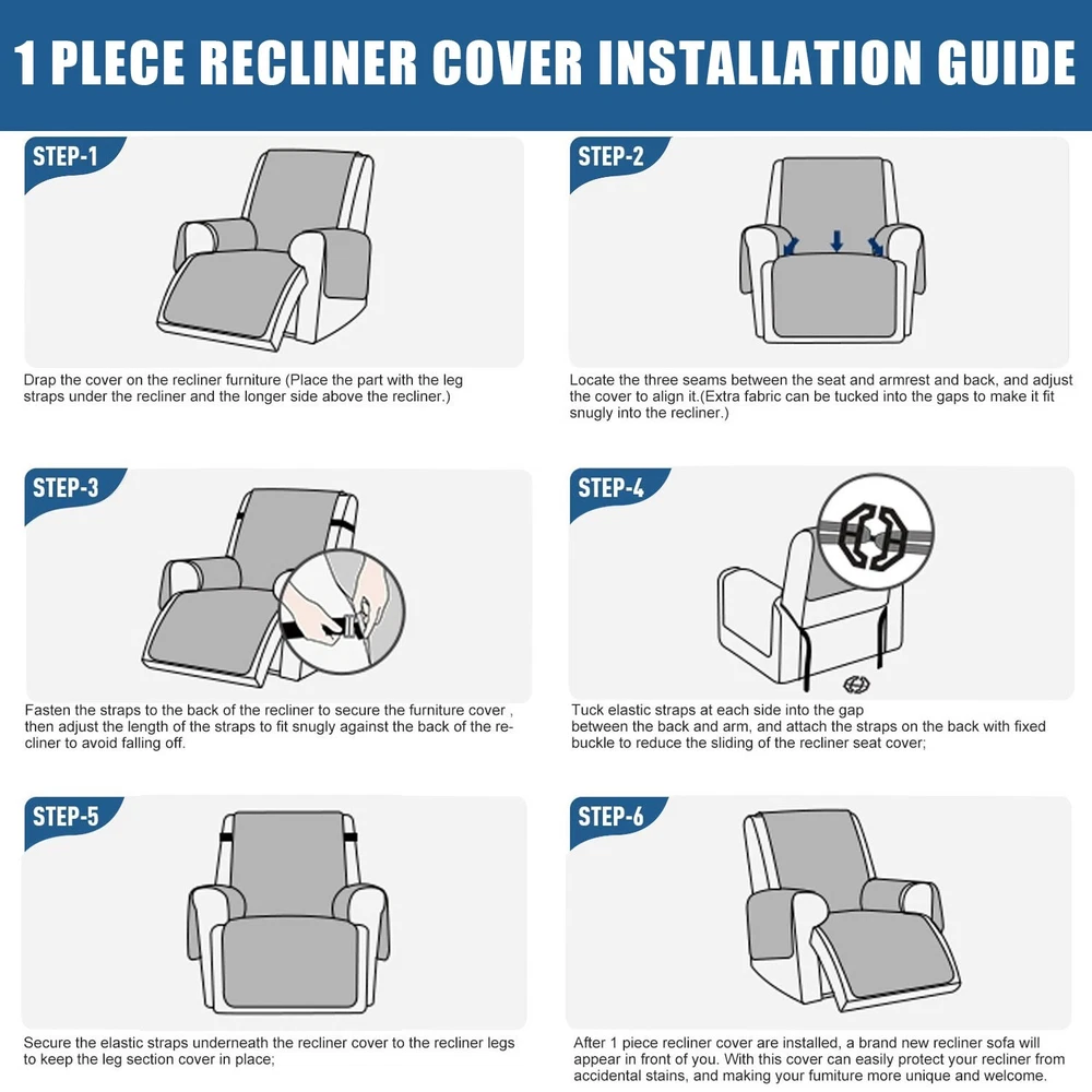 About this item 【100% WATERPROOF FABRIC】We use high-grade fabric to undergo waterproof treatment by coating a waterproof layer on the top, to ensure our recliner chair cover provides 100% guaranteed waterproof and leak-proof features. This new waterproof feature (can be tested), is a great way to protect your sofa from any drinks, spills, daily wear and tear. Making sure your furniture are clean at all times. 【HIGH QUALITY MATERIAL】 reclining chair cover are made of choiceness material, quilted from 5 layers of durable fabric, and the inner-layer is filled with soft texture fabric to make it more comfortable, soft, durable and strong, it would be a great choice for homes with kids and pets. 【REDUCE SLIP-OFF CONCEPT】Reduce movement around! 1. Solid round colloid design on the back of our recliner cover; 2. Additional flexible elastic straps; 3. Two elastic bands at seat's back side and the matching buckle, to reduce the sliding of the recliner chair slipcover, even on the leather furnitures. 【DIMENSIONS GUIDE】 Small pet recliner cover fit a chair with a seat width of 20 in, see measurement guide in photos. NOTE: Please confirm the size before purchasing.(Due to some lighting reasons, the color of each display will be different, so please refer to the actual color.) 【Easy to install & Easy care】Care instruction: Hand or machine washable, wash at a temperature around 30 degrees Celsius, mild laundry detergent advice. Do not bleach. Do not iron. (Service Guarantee: If have any questions on the product, please contact us for help.)