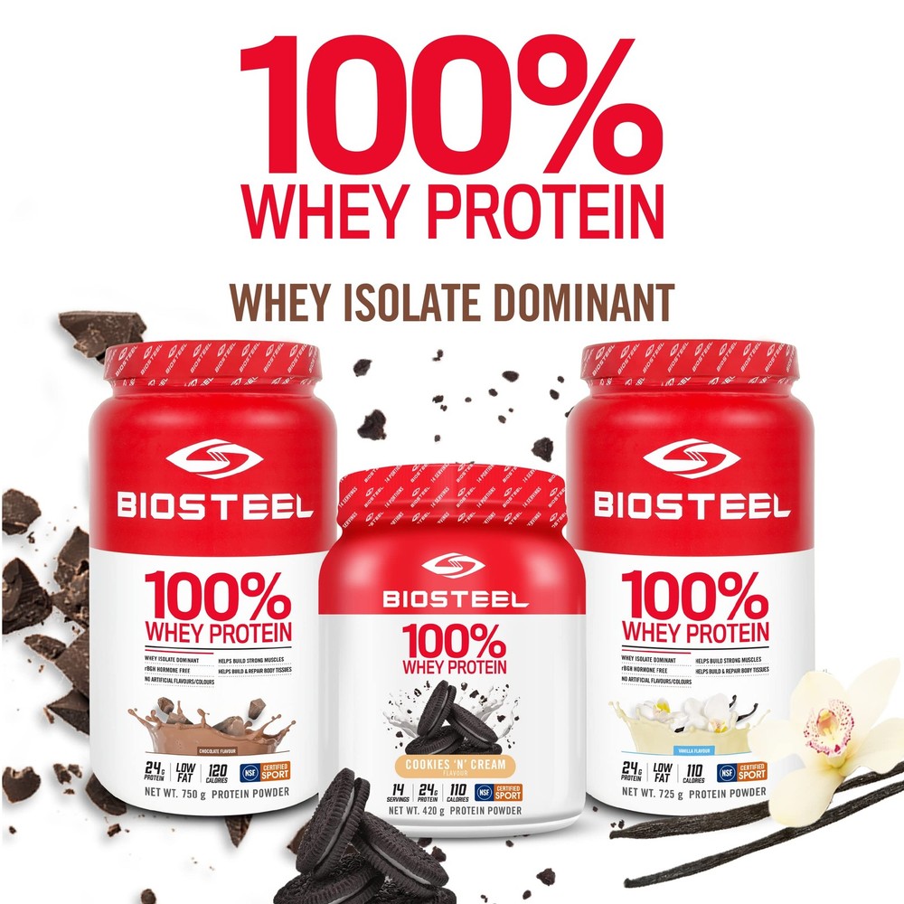 Introducing the 100% Whey Protein in a delectable Cookies & Cream flavor, meticulously crafted to cater to the nutritional needs of the discerning athlete. Each serving delivers 24g of pure, high-quality whey protein hydrolysate, making it an exemplary choice for those seeking the best protein powder for men. This premium powder protein is designed to enhance recovery and build strong muscles, ideal for post-workout nourishment and muscle recovery. 's whey protein powder is NSF certified for sport, ensuring that it meets the highest standards of quality and purity. Our commitment to excellence is reflected in our choice of ingredients, including non-GMO protein powder, making it a trusted protein powder for athletes. This low-carb protein powder is also sugar free, sweetened naturally with stevia, and contains no artificial flavors or colors, delivering a clean and effective protein shake powder option. Our whey protein isolate is rBGH hormone-free, emphasizing our dedication to offering a protein supplement that supports your health and fitness goals without compromise. The vanilla whey protein powder boasts an amino acid-rich profile, including leucine, which is vital for repairing body tissues and promoting muscle recovery. With 14 servings per container, this low-calorie protein powder offers convenience without sacrificing quality. 's protein powder whey is soy-free, gluten-free, and low-fat, making it an ideal choice for those with dietary restrictions. The raw protein powder is formulated to be easily absorbed, ensuring that the amino acids quickly reach the muscles for optimal recovery and growth. Whether you're a professional athlete or a fitness enthusiast, this protein powder isolate stands out as a top-rated whey protein choice, delivering unmatched performance and results. Sugar Free Protein Shake Powder: Indulge guilt-free with our Cookies & Cream protein shake powder. This sugar free formula is crafted for pro athletes, ensuring a clean energy boost without compromising on taste or nutrition. Whey Isolate for Enhanced Recovery: Our Cookies & Cream whey protein powder features high-quality whey isolate, offering 24g protein per serving. This raw protein powder is designed to support muscle recovery and repair body tissues post workout. Low Carb Protein Powder: Specially formulated for fitness enthusiasts, this low carb protein powder is perfect for those seeking a lean, low-calorie protein powder option, without sacrificing flavor or performance. RBGH Free and Non-GMO: Choose a healthier option with our rbgh hormone-free and non-gmo protein powder. This soy free protein powder ensures you receive pure nutrition, free from artificial additives or GMOs. Whey Protein Hydrolysate for Athletes: Elevate your performance with our whey protein hydrolysate, a top rated whey protein. Designed as the best protein powder for men, it's an ideal post workout formula to fuel and recover. Non-GMO