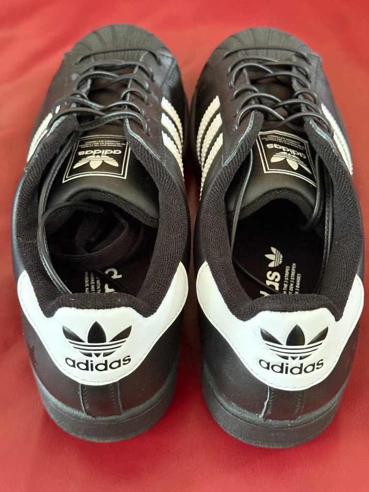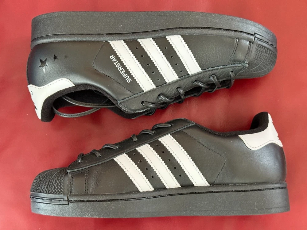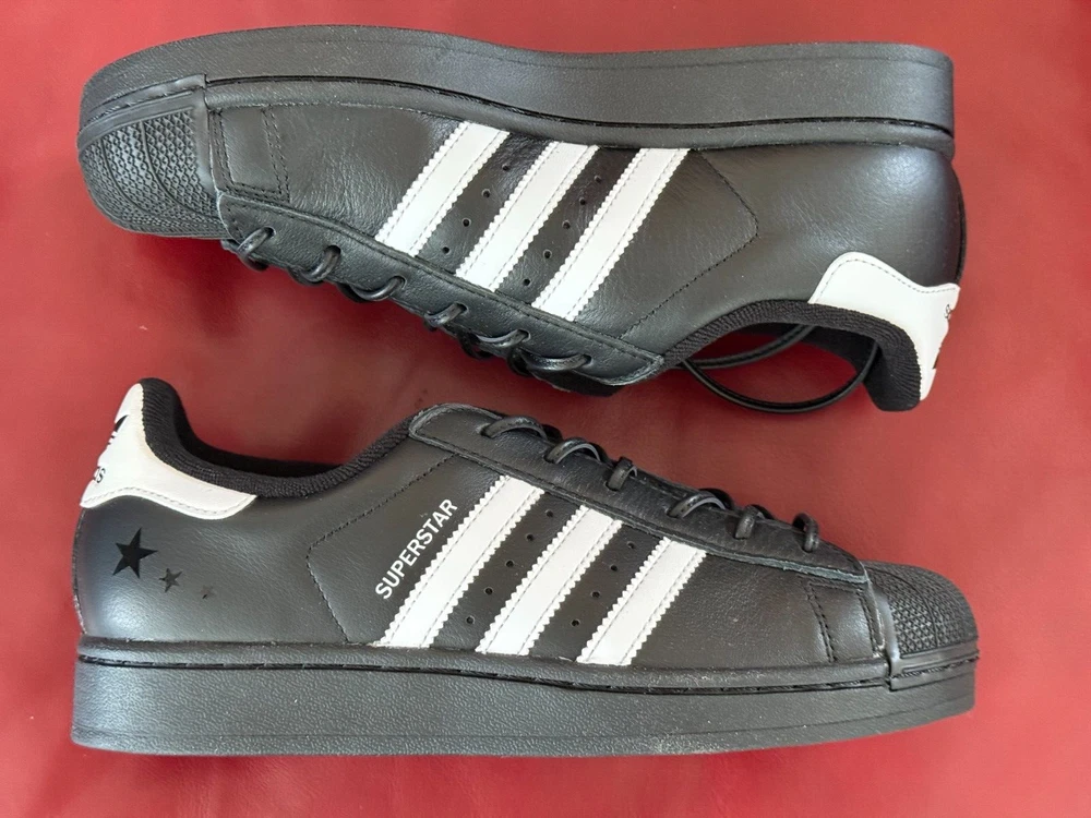 $100.00 MSRP NOTE: Shoes are brand new. Box is a little beat up. Description The beloved adidas Superstar Shoe with a classic rounded shell toe. The iconic adidas Superstar shoes are back. Step into 50 years of sport and street style with these low top sneakers. A smooth leather upper and rubber shell toe evoke memories of basketball courts and city streets. The padded tongue and collar add comfort for all-day wear while the textured rubber outsole provides grip. Whether you're shooting hoops or hitting the town, the adidas Superstar shoes have the versatility and retro appeal to take you there in classic style. Details Regular fit Lace closure Leather upper Padded tongue Textile lining Rubber outsole Imported Product color: Core Black / Cloud White / Core Black Product code: JI0079
