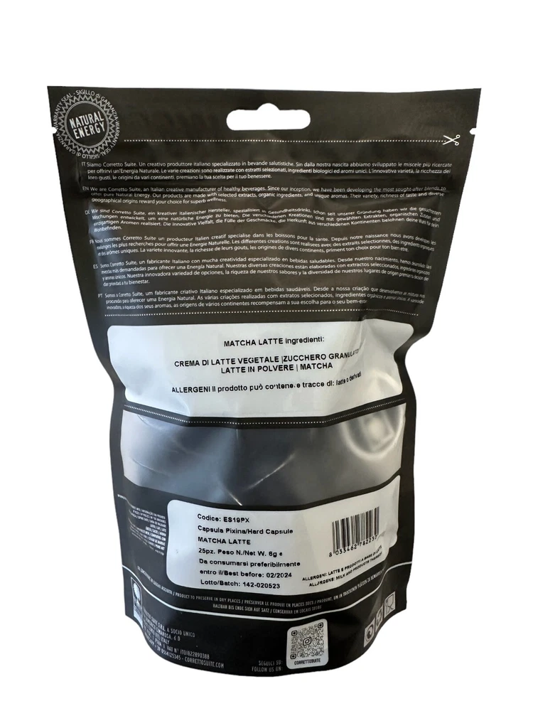 MATCHA LATTE Ingredients: Vegetal Non Dairy Cream, sugar, pure organic Japanese Matcha, milk powder Pod's color could vary The Matcha is considered the healthiest variety of tea, precious and rare in Japan. Perfumed and bright green color, is distinguished by its delicate fragrance and the unmistakable taste, perfect combination of cream sweetness and slightly bitter notes. It is also called “beauty tea”, to the antioxidant properties, and contains amino acids that reduce the physical and psychological stress. In addition, the high content of caffeine provides a boost of energy and keeps the mind alert. Vegetable flavour with penetrating marine notes. Matcha Latte is a tea-based beverage combining vivid green matcha tea powder and milk, or a dairy substitute , to create a smooth, creamy, caffeinated coffee alternative. Many tearooms and coffee shops offer Matcha Lattes both hot and iced now you can get your shot at your place. Ideal for large cup to taste please use only with original Nespresso coffee machines (NOT VERTUO)