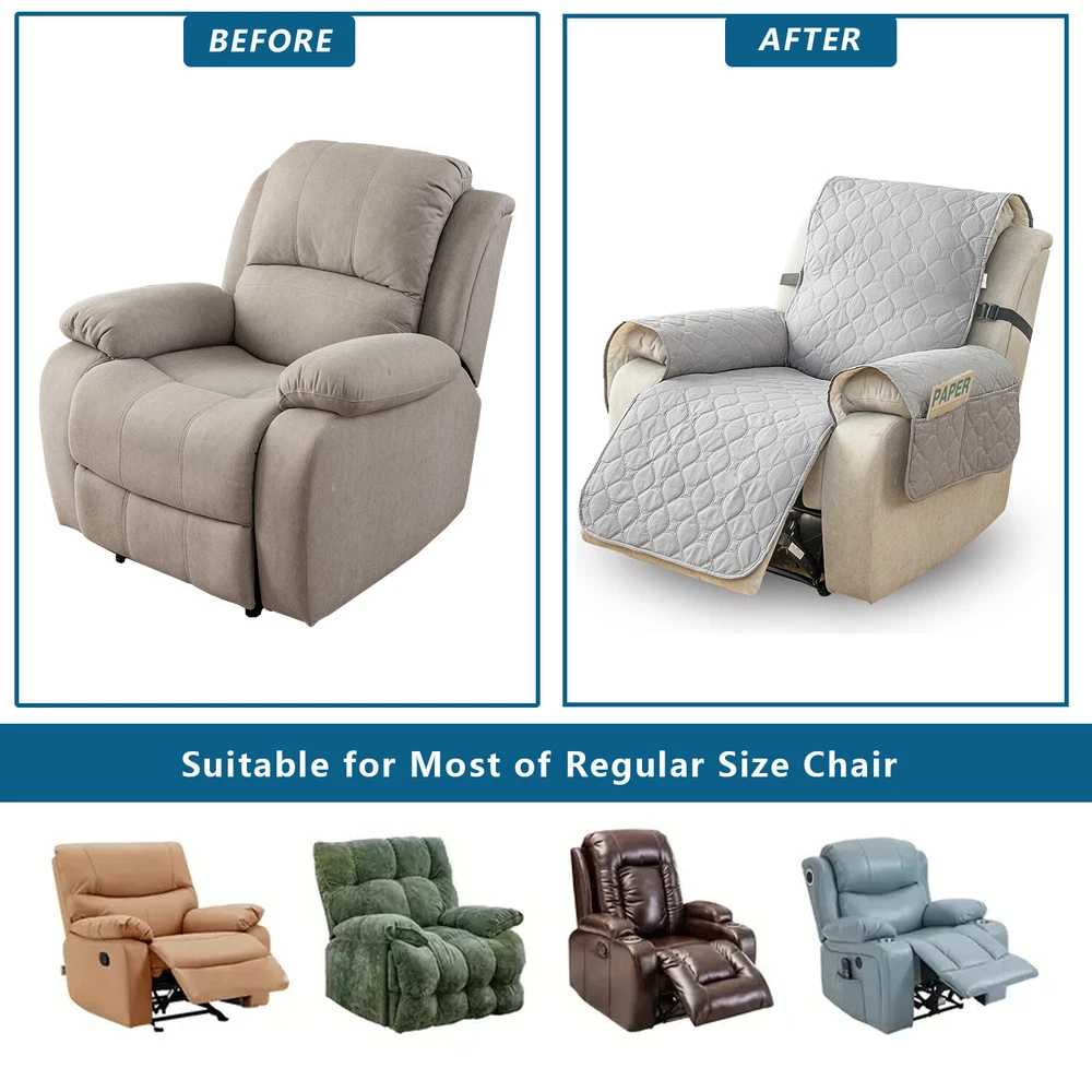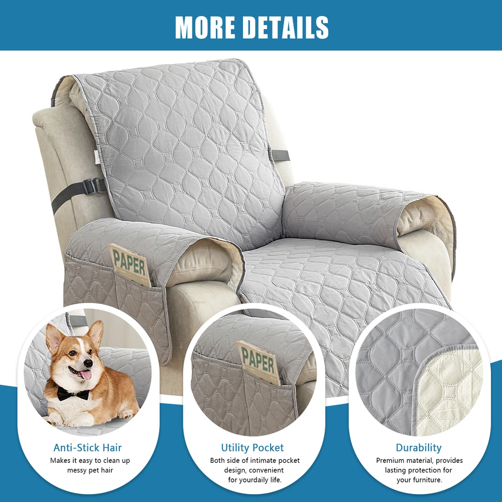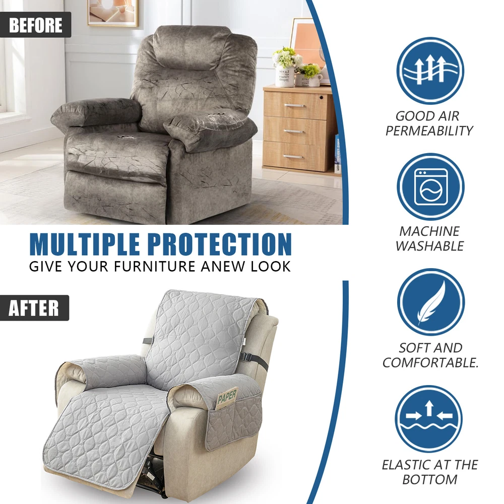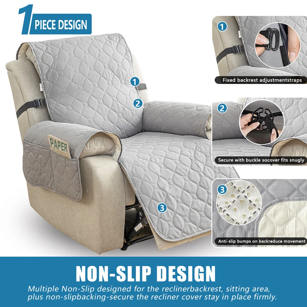 100% waterproof non-slip recliner sofa cover, stretch-strap recliner pet cover,
