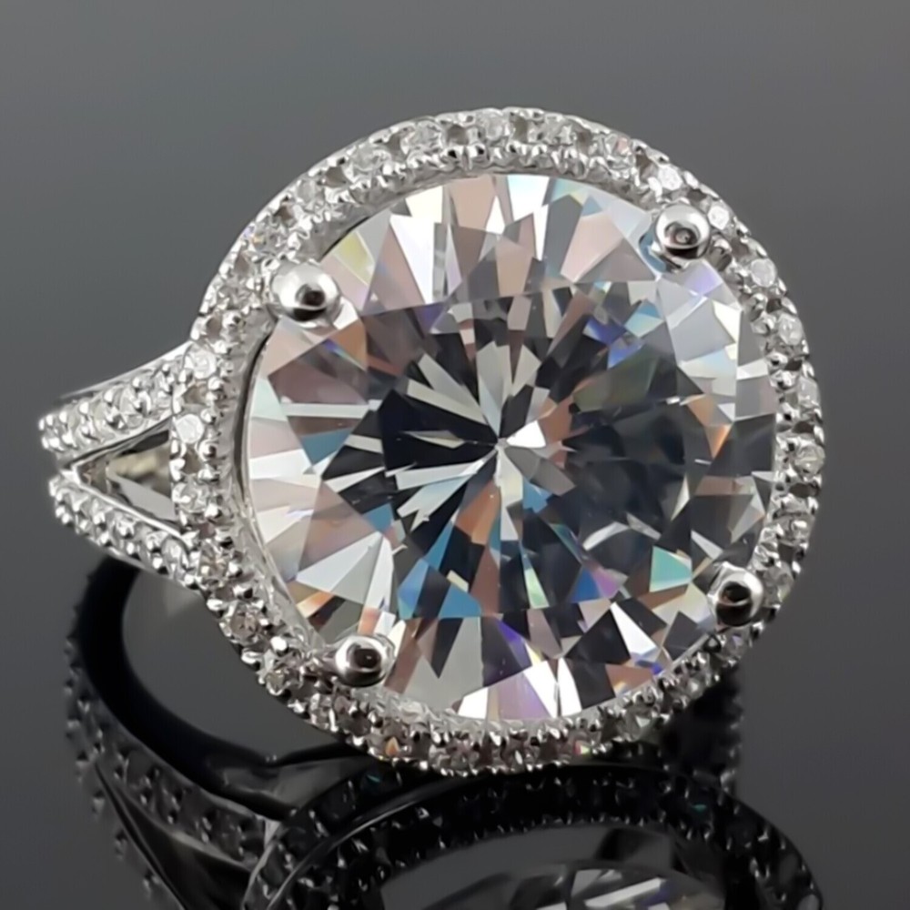 Certified 16.10 Ct Radiant Cut White Diamond Solitaire Ring In 925 Silver