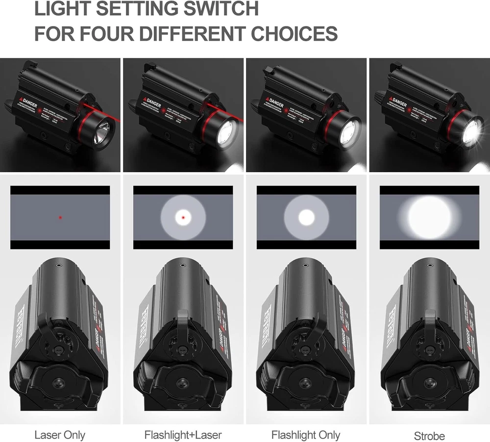 1000 Lumen Weapon Flashlight w/ Picatinny Rail Mount for Pistol Rifle Red Laser Extra bright 1000 lumens torch and 650nm laser light combo. Tactical-level output with Total Internal Reflection lens for close- to longer-range applications 4 Different target acquisition methods: 1000 Lumen flashlight only, laser only, strobe, and flashlight and laser together. Easy toggle switches between pinpointing or disorienting your focused target USB Rechargeable Battery - in addition to functional and brightness upgrades, we also improved the battery, replacing the removable battery, and can be charged directly using the usb interface, both convenient and fast Long distance green dot laser sight, clear and extra bright laser beam, power output ≤5mw. Dot laser daylight as 200 yard, can be reach 350 yard at night Made of aircraft grade aluminium alloy, impact-resistant polymer; shockproof and tear resistant, weatherproof-O-ring and gasket sealed. Can be adapted to standard size picatinny as pistol light / rifle light, etc Top-Notch USA Seller | S wift USPS/UPS delivery | Shipped within 1 Business Day | Quick Replies | Free Shipping | Prompt Communication Contact us We value open communication with our customers. Our team is committed to providing quick responses to any queries or concerns you may have regarding our products or your order. Please feel free to contact us on eBay's Internal Message System for any questions or concerns you may have. Our dedicated customer service team is committed to providing exceptional support and ensuring your shopping experience with us is nothing short of excellent. Customer Service We strive to offer the best quality products to our customers. Each item listed in our store undergoes rigorous quality checks to ensure customer satisfaction. If you have any problems, we are very glad to help you. Please message us directly through eBay for faster response. Your inquiry is important to us and we'll respond within 24 Hr. Your order will be shipped within 1 business days upon full payment received. [ Due to the different monitor and light effect, the actual color of the item might be slightly different from the color showed on the pictures. Thank you ! ]