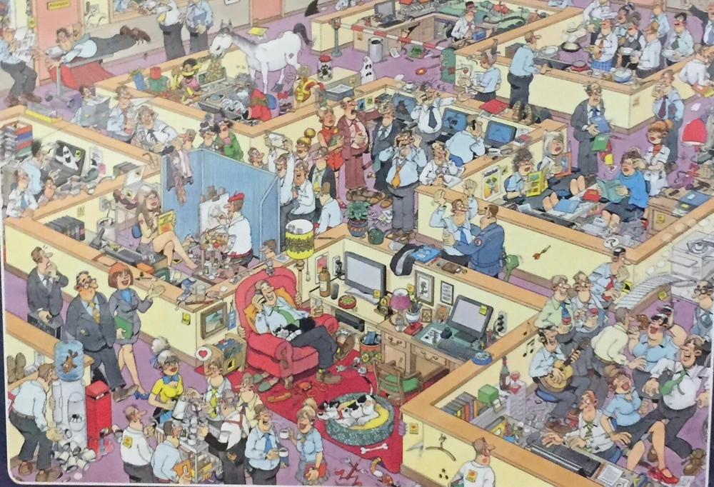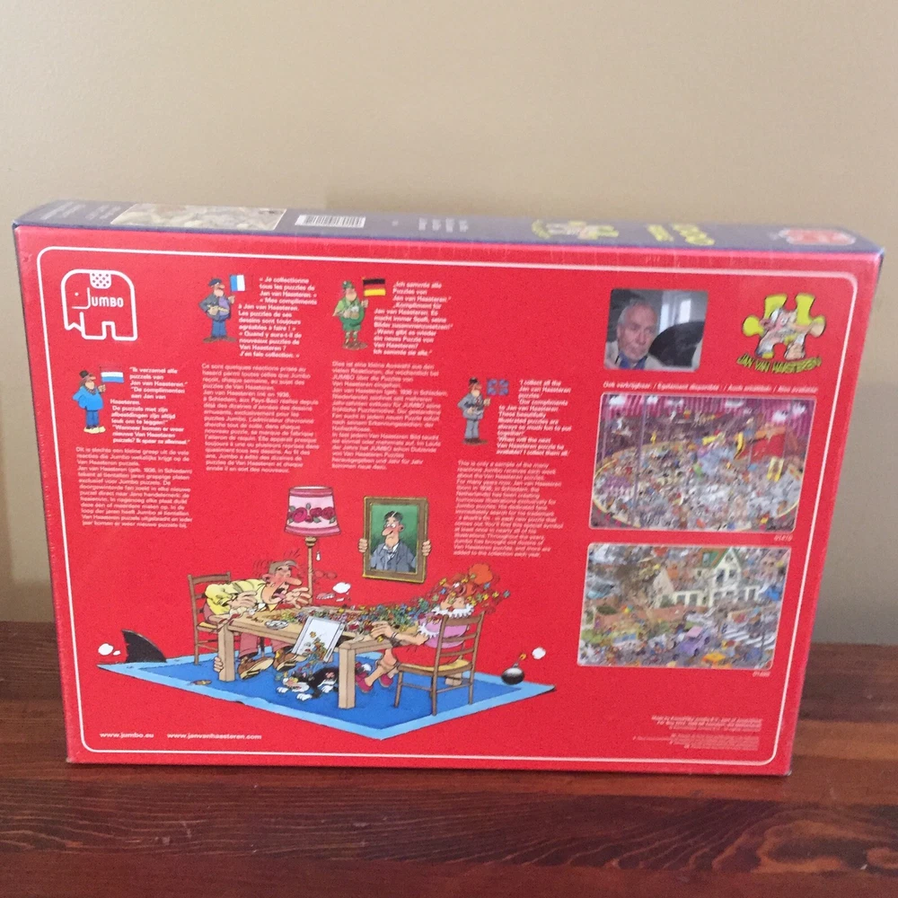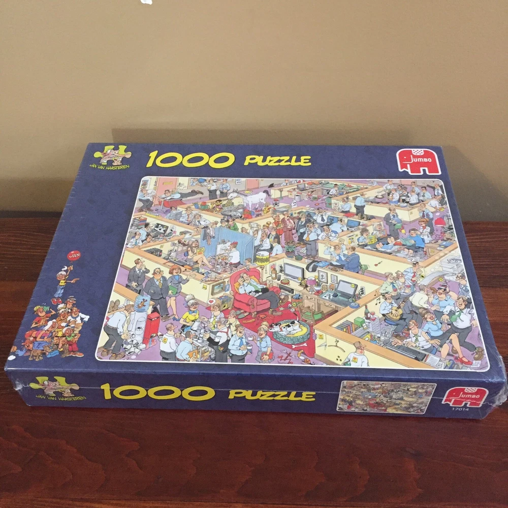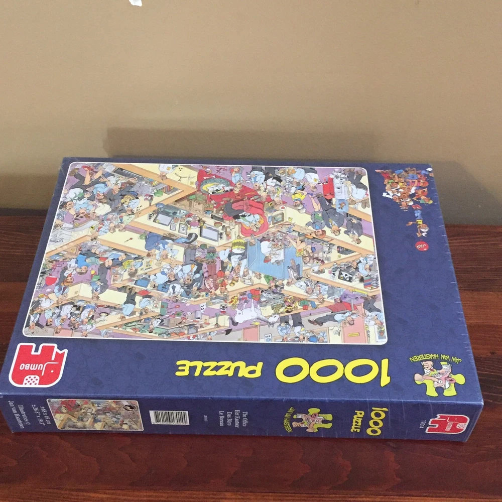 1500 pieces Complete. Was put together 1x All pieces complete and in zip lock bag THE OFFICE WORKPLACE GIFT CUBICLES FUM FUNNY PUZZLE Jan Van Haasteran Jigsaw Puzzles Jan Van Haasteran Puzzles - Jan Van Haasteren was born in 1936, in Schiedam, The Netherlands. He has been creating humorous illustrations exclusively for Jumbo puzzles. His dedicated fans immediately search for his trademark – a shark fin – in each new jigsaw puzzle that comes out! Jigsaw puzzles by Jan Van Haasteran are a joy to put together! Jan Van Haasteren creates cartoon jigsaw puzzles that are crowded, silly, and even include a secret hidden shark fin. Jan Van Haasteren puzzles on sale now! Jan van Haasteren is a comic artist who has created these crowded and funny cartoon puzzles that are very silly and enjoyable even for adults. Every cartoon he creates features a hidden shark fin, can you find it?!
