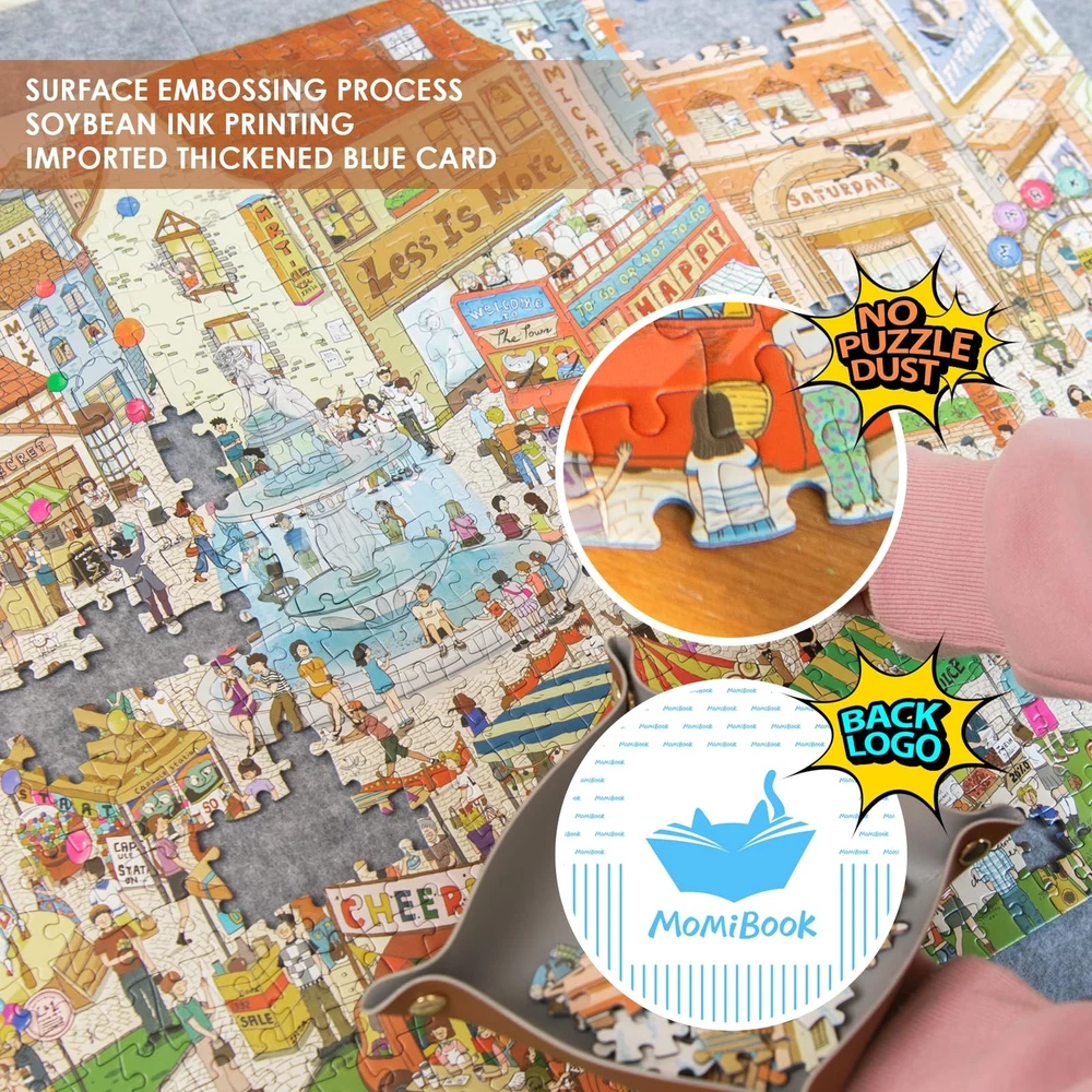 Original Design: has an excellent design team and senior illustrators and insists on originality. Each of our jigsaw puzzles is unique. Originally designed jigsaw puzzles 1000 pieces for adults will bring you a richer and more interesting experience and drive away visual fatigue Story: Did you find it? There is a story in the 1000 piece puzzle for adults, you can read it on the details page below! 's amazing vintage jigsaw puzzles & challenging iq puzzles will bring more happiness and common topics when you and your family and friends are puzzled, entertained, and decompressed Tight Collage: 's self-developed professional-double-knife mold has smooth cutting edges without barbs and is rigorously assembled. After the iq puzzle is completed, the entire jigsaw puzzle 75*50cm (29.5"x19.7") can be picked up. You can assemble it repeatedly. Can you find it? There is a puzzle piece of the letter M in puzzles for adults 1000 pieces and up of Material & Craftsmanship: Imported professional blue card material cardboard, stiff & textured. Printed with soybean ink, safe, heat-resistant & friction-resistant. The surface of jigsaw puzzles for adults is embossed. The pattern is not easy to fall off, more textured. The double-sided paper mounting process increases the hardness by 15%. A single-piece puzzle is 2.6*2.6cm (1"x1"). The thickness is about 0.3cm (0.12"), which can be easily picked up by the elderly Tips: jigsaw puzzles for adults 1000 pieces and up have a high-definition poster 37.6*25.1cm (14.8"x9.8"). Our jigsaw puzzles for men, women, teens, can be used as Christmas puzzle, birthday surprise, Valentine's Day surprise, Mother's Day surprise, Father's Day surprise, New Year surprise, beautiful & creative choice puzzles for families, friends, lovers. The package does not include a stand, felt board, glue, or puzzle frame