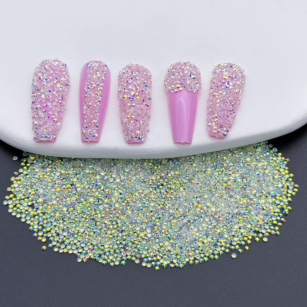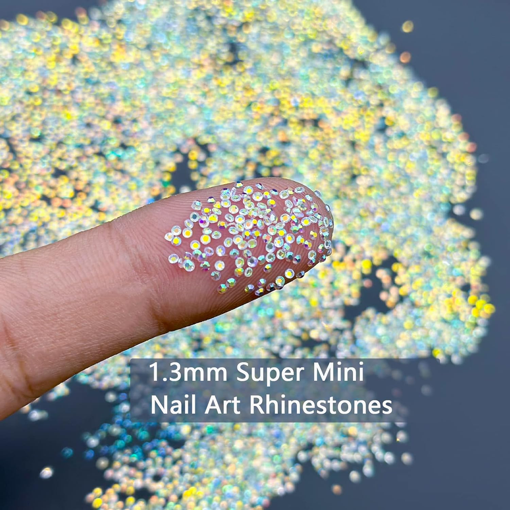 10000 Pixie Nail Crystals - Iridescent Shine Mini 1.3Mm Crushed Rhinestones & Su