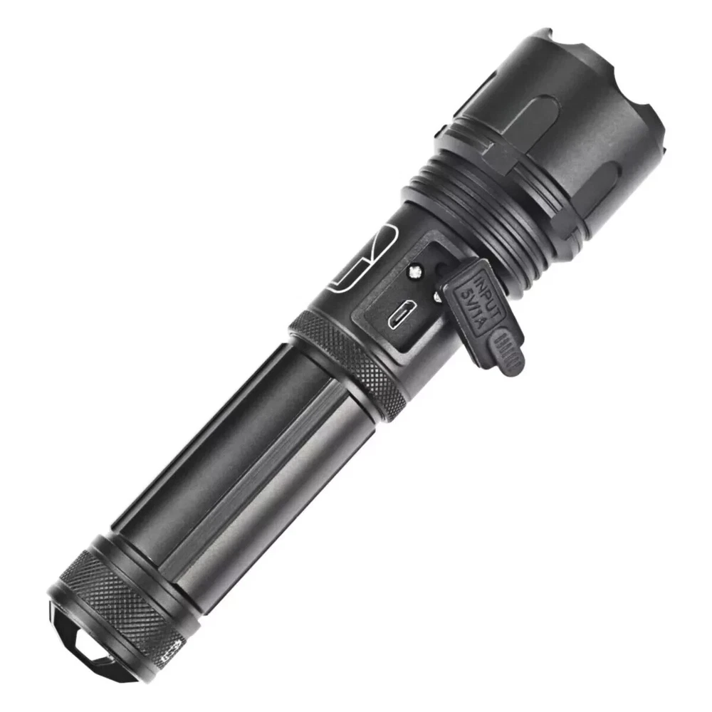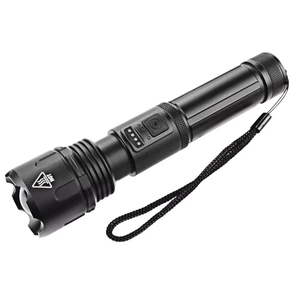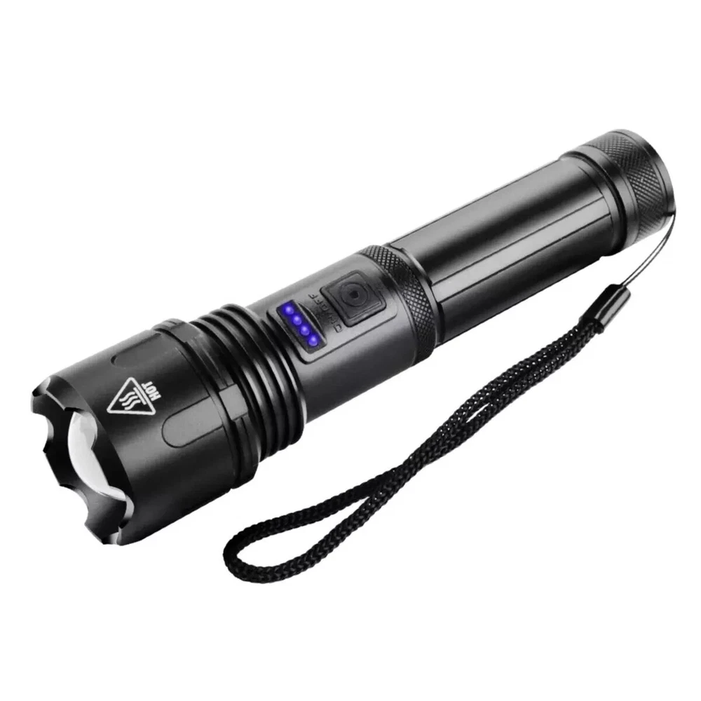 Features: ใ€๐’๐ฎ๐ฉ๐ž๐ซ ๐๐ซ๐ข๐ ๐ก๐ญใ€‘Utilizing the latest generation XHP90 LED chip with a lifespan of 500,000 hours, itโ€™s much brighter than ordinary incandescent lamps, can easily light up an entire room or focus in on objects 1600 feet! ใ€๐”๐’๐ Rechargeable ใ€‘Has been completely improved to shorten the charging time and extend the service life. Built-in usb interface, you can charge it by power bank, adaptor, computer etc. , so it's more convenient to charge. ใ€ 5 ๐‹๐ข๐ ๐ก๐ญ ๐Œ๐จ๐๐ž๐ฌใ€‘Equipped with 5 lighting modes: High - Middle - Low - Strobe - SOS, you can choose different lighting modes to meet your different needs. ใ€ 4 ๐๐จ๐ฐ๐ž๐ซ ๐ƒ๐ข๐ฌ๐ฉ๐ฅ๐š๐ฒใ€‘In addition, it have 4 power display function: 25% - 50% - 75% -100%, so that you can see the power at a glance and charge the flashlight in time. ใ€ Adjustable Focus ใ€‘You can stretch the head to zoom in and zoom out, zoom in is floodlight, which has balance and large lighting range; zoom out is spotlight, it is center and long lighting range. ใ€ IP65 ๐–๐š๐ญ๐ž๐ซ๐ฉ๐ซ๐จ๐จ๐Ÿใ€‘It rated as IP65 grade to protect against spray water in any direction, there's high-quality, leakage-resistant, waterproof wiring, there to make sure your flashlight stay on while raining. Don't immerce the flashlight into water. ใ€ Wide Applications ใ€‘Suitable for Camping, Hiking, Cycling, Backpacking, Hunting, Fishing, Auto Emergencies, and Home Repair, family and outdoor activity etc. Specifications: Type: LED Flashlight Bulb: XHP90 Material: Aluminum Alloy Color: Black Dimension: 157 x 40 x 28.5mm / 6.18 x 1.57 x 1.12in Weight: 156g / 0.34lbs Mode: High - Middle - Low - Strobe - SOS Adjustable Focus: Telescopic zoom Waterproof: IP65 Package Includes: 1 x Tactical LED Flashlight 1 x USB Charger 1 x USB Cable 1 x Rechargeable Battery