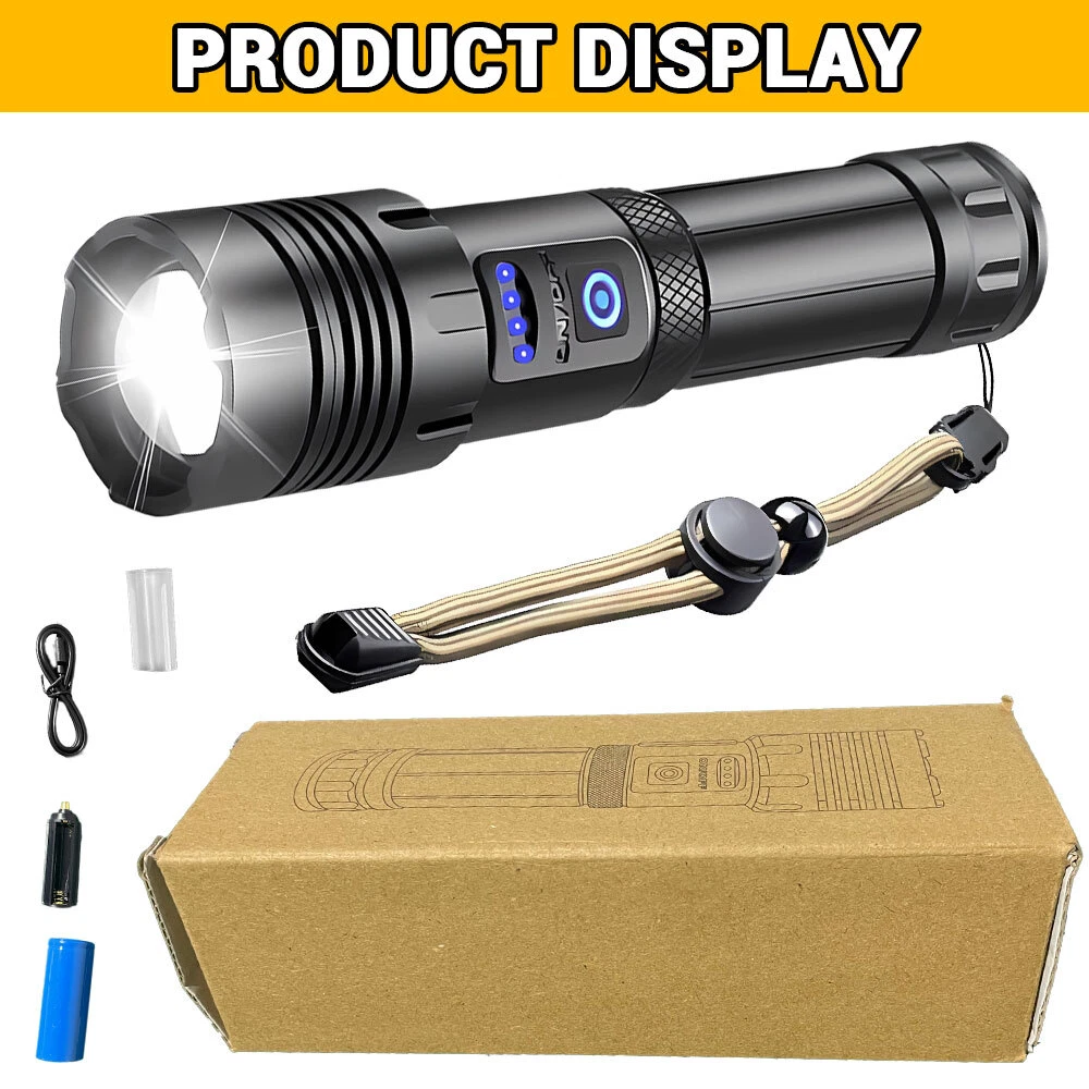 1000000 Lumens Super Bright LED Tactical Flashlight Rechargeable LED Work Light
