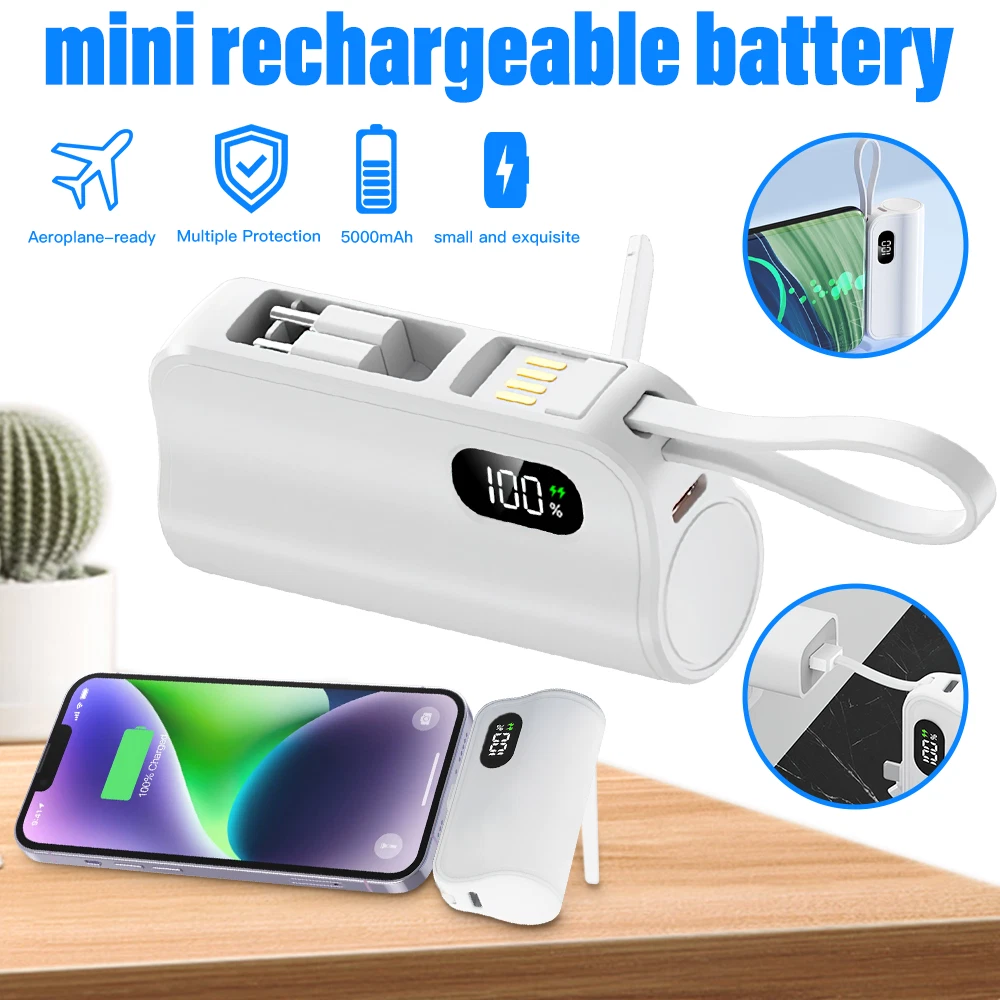 Specification: Product type: mini convenient self-wired charging treasure-LCD real power display Product size: 8*4.5*2.7cm USB-C input: 5V/2.4A USB-C charging head output: 5V/2.4A Charger 2 output: 5V/2.4A Battery capacity: 10000AMH Output Connector: for iphone / Type-C Charging power: 5W Battery type: polymer lithium-ion batteries Product shell material: alloy Advantage: Dual Head Hidden Charger; Shrinkable storage compact and easy to carry charging; LCD real power display; Cell phone holder function; Can be equipped with lanyard design; Support Apple 15 & about all cell phones are supported basically; Support 99% market holster; Multiple protection, can be on the airplane Compatible models: For iPhone XS / For iPhone XS Max For iPhone X / For iPhone XR For iPhone 8 / For iPhone 8 Plus For iPhone 7 / For iPhone 7 Plus For iPhone 6 / For iPhone 6 Plus For iPhone 6s / For iPhone 6s Plus For iPhone 5 / For iPhone 5s For iPhone 11 / For iPhone 11 Pro / For iPhone 11 Pro Max For iPhone 12 / For iPhone 12 Pro/ For iPhone 12 Pro Max/ For 12 mini For iPhone 13 / For iPhone 13 Pro/ For iPhone 13 Pro Max/ For 13 mini For iPhone 14 / 14 Plus / 14 Pro / 14 Pro Max For iPhone 15/15 Plus/15 Pro/15 Pro Max For AirPods/AirPods Pro For Android Samsung Galaxy/Xiaomi/Google/HTC/LG/Redmi/Oneplus and other Type C devices Package included: 1 x mini power bank