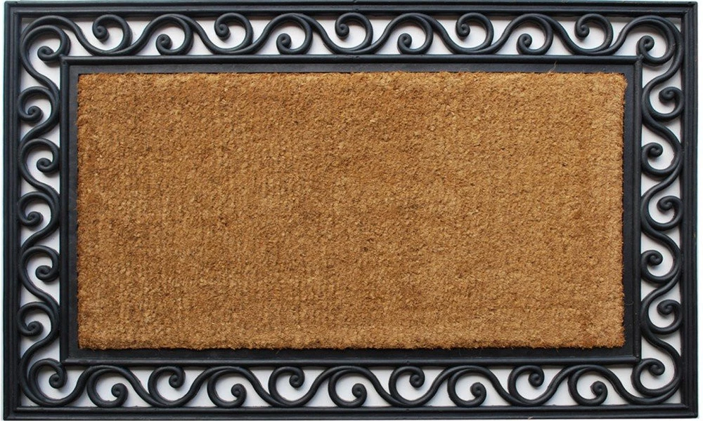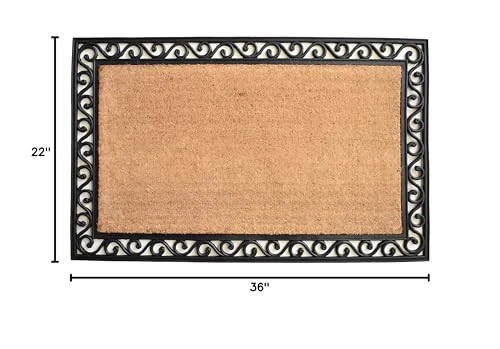 Over-sized to provide more coverage, this beautiful combination of coir and rubber make a stylish, yet durable reception for your guests. While the heavy-duty rubber adds weight and elegance, the coir acts as a scraper on shoes to keep debris from entering your home. Sweep or hose clean. Over-sized to provide more coverage Heavy-duty rubber base and frame All-season Coir that scrapes shoes clean Dimensions: 22” x 36” x 1"