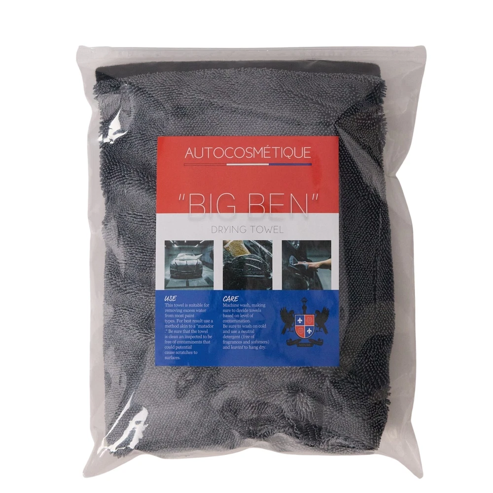 This AutoCosmétique microfiber towel is perfect for drying your car or other automotive surfaces. The extra large 24x32'' size provides ample coverage for effective cleaning, while the dark gray color adds a sleek touch to your cleaning routine. Made of high-quality microfiber material, this towel is reusable, lint-free, and streak-free, ensuring a smooth and spotless finish on your vehicle. Ideal for automotive enthusiasts, this towel is a must-have for anyone looking to achieve a professional-grade clean for their car.