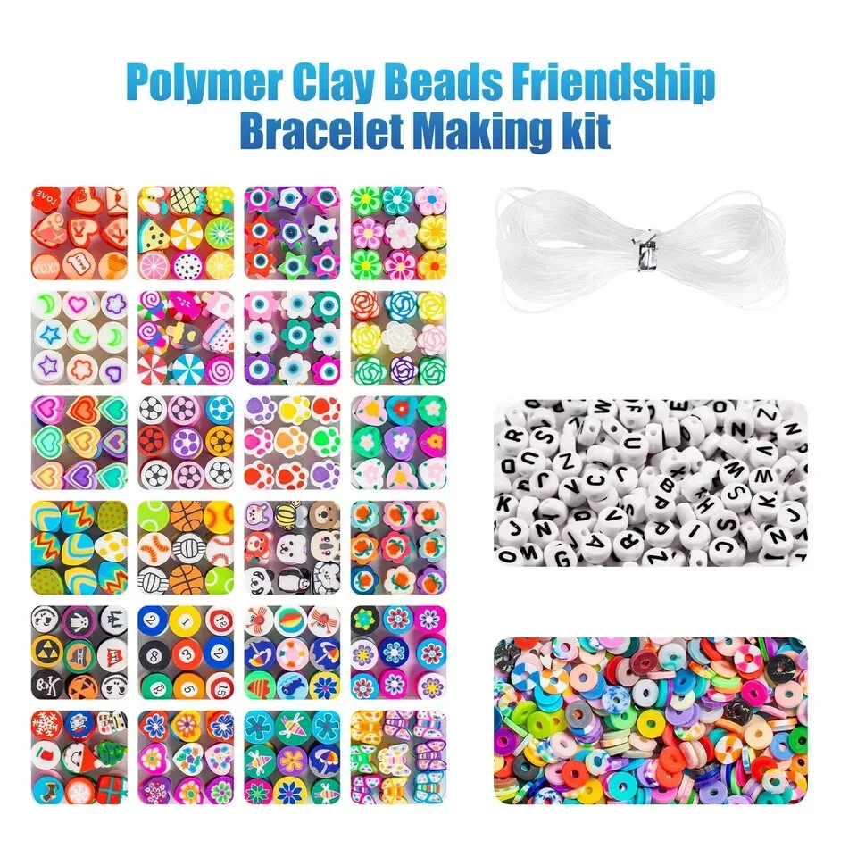 Diverse Bracelet Beads Kit Assortment:approximate 1000 pcs beads,Includes 10mm clay beads,hole is 2mm, 6mm flat clay beads,hole is 2mm,4x7mm letter beads, hole is 1mm,with 1pcs 0.8mm bracelet string catering to various DIY jewelry making needs. High-Quality Craftsmanship:Each bead is carefully crafted with precision, ensuring a consistent and high-quality product that meets the standards of discerning crafters. Vibrant Colors, Fade-Resistant:The clay beads kit feature bright and vibrant colors that are specially treated to resist fading over time, maintaining the aesthetic appeal and longevity of your creations. Versatile Applications:Ideal for creating a variety of fashion accessories such as bracelets, necklaces, earrings, and pendants,It also makes a perfect gift, especially for young girls. Unleash Creativity and Enjoy Crafting:These clay beads kit are designed to inspire creativity and provide a fun and engaging crafting experience, allowing you to create unique and personalized jewelry pieces.