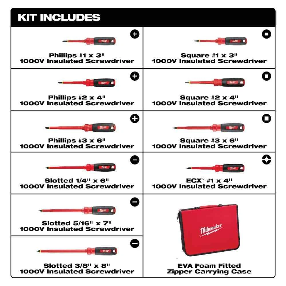 1000V Insulated Screwdriver Set Case (10-Piece)
