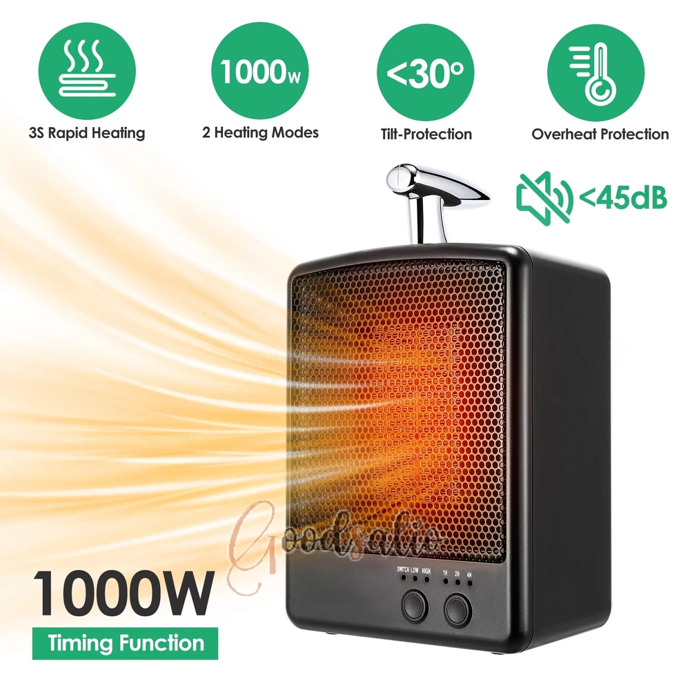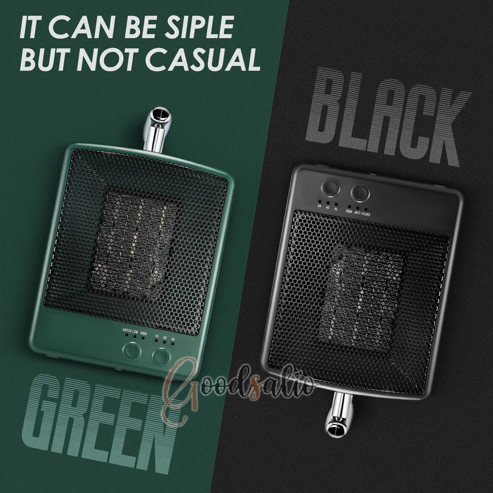 1000W Electric Portable Mini Heater Small Ceramic Heating Fan Home Office Floor ★SPECIAL TIPS: √ Ship within 24 hours Via USPS from NJ ,USA √ 100% New & Excellent Quality √ Professional Customer Service √ Strictly QC, Each set was fully tested before shipping √ Offer delivery with Tracking Number Feature: -- 3S Quick Heating: The heater is made of flame-retardant ABS, and also adopts PTC ceramic heating technology, can quickly heat up within 3 seconds, releasing a lot of heat to help you get rid of the cold quickly. -- Timing Function: The heater has 2 temperature levels, 500W low heat and 1000W high heat, and it also has a timing mode selection(1H/2H/4H), the timing time is 2-8 hours, you can easily adjust to get the comfortable heat you want. -- Tipping and Overheating Protection: The heat-resistant material and overheat protection function effectively reduce the risk of fire when the temperature is too high, besides, the heater will automatically shut down when it’s knocked over accidentally. -- Low Noise Mode: The working noise of the air heater is less than 45 decibels, which is quiet enough that it will not disturb your sleep, work, study and reading, at the same time, the heater has a stylish appearance and is also a good choice for interior decoration. -- Lightweight and Portable: Small size, won't take up much space, and equipped with a 4.3 feet of cord, can be placed on a table or nightstand, the comfortable handle design on the top of the heater allows you to move it anywhere. -- Wide Application: The heater helps to improve the comfort of the environment and heating needs, suitable for offices, rooms, desks, homes, bedrooms, and also a thoughtful gift for family and friends in winter. Specification: Product name: PTC ceramic heater Model: MQ-802 Colour: Black,Green Material: flame retardant ABS Rated voltage: 110V~/220V~ Rated power: 1000W Rated frequency: 50Hz Noise: 37-45dB Heating element: PTC Speed gear: second gear Timing function: 2-8 hours Operation mode: mechanical Applicable area: 21-30㎡ Heating method: 500W (low temperature); 1000W (high temperature) Support: 3 seconds fast heating; overheating protection; dumping power failure Power cord length: 1.3m/4.3ft Product size: 250*150*95mm/9.84*5.9*3.74inch Package includes: 1x Heater 1x Power Cord 1x Manual 1x Packing Box