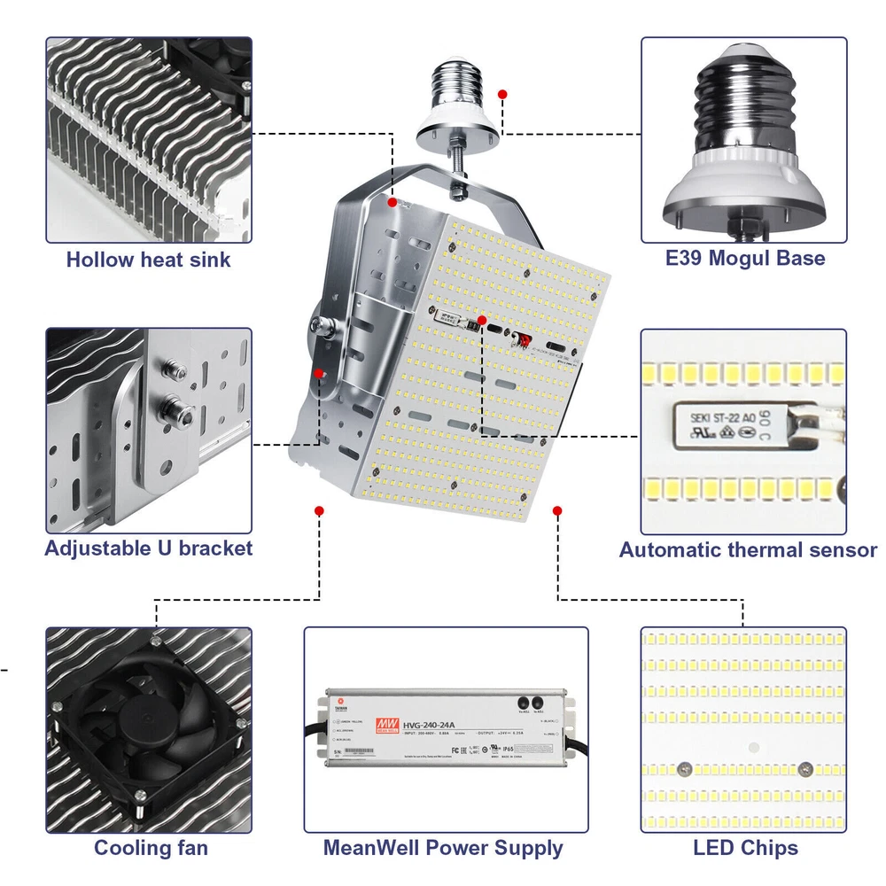 Product Description 1000W HID Equal 240W LED Retrofit Kit For Garage Parking Lot Shoebox Light 480V 【RETROFIT STYLE PARKING LOT LED LIGHTS】-- This style of retrofit the power supply is separate from the light source. This makes it much easier to perform repairs in the future. 140lm/w high efficiency SMD led chips, 240 Watt led shoebox retrofit kit has up to 33600 Lumens and can replace 1000 Watt HPS/HID/Metal Halide/Mercury Vapor Traditional lights, 1600W incandescent or 650W CFL without Changing Fixture. Effectively saving 90% of the cost on your bills 【SUPERIOR DESIGN & LIGHTING PERFORMANCE】-- Retrofit Light has a wide 120 degree beam angle projection. IP67 waterproof LED Driver(not for light body) for longer life and high reliability. Surge protection up to 6KV. Better cooling system designed with Larger size aluminum heat sink and a high speed fan ensure a long lifespan performance, 80+ CRI. 5700K white bring you super bright lighting experience. No Any noises, No Flickering, No mercury, No UV infrared or other deleterious radiation, safe for your eyes 【EASY INSTALLATION for OUTDOOR ENCLOSED FIXTURES】-- Ballast bypassed, E39 mogul screw base suit for most old fixture. Comes with 180 degree adjustable solid bracket designed for horizontal and vertical mounting [★Please check retrofit kit pictures and dimensions to ensure fitment★]. 【SAFETY GUARANTEE & REBATE ELIGIBLE】-- NUOGUAN’s LED shoebox retrofit kit are ETL DLC RATED. ETL for optimal safety and efficiency, DLC certifications to ensure energy rebates, lowest maintenance, risk-free purchase. Rated for 100-277volts. Perfect for parking lots light, driveway street area road pole lights, Canopy gas station fixtures, outdoor shoebox pole fixtures, wall pack security lights, cobra head urban, flood lights, high bay warehouse fixtures and so on 【5 YEAR WARRANTY】-- 5 Years Warranty for our LED shoebox retrofit kit, easy and fast replacement is offered if any quality issue. Technical Details Manufacturer :NUOGUAN Part Number :NGRK-240W Item Weight :3.3KG Style :Shoebox Retrofit Kit Material :Aluminum Power Source :Corded-electric Input Voltage :AC185-528 Volts Wattage :240 watts Item Package Quantity :1 Type of Bulb :LED Luminous Flux :33600LM Plug Profile :E39 screw Special Features Power factor :>0.97 CRI:>80 Lamp base: E39 Mogul Base CCT: 5700K Cool white Installation attention: For Outdoor Enclosed fixtures retrofit, Make sure To Bypass or Remove The Electronic Ballast, Capacitor, Ignitor In The Fixture Before Install The Led Retrofit Kit, Retro fit style, easy to replace or fix your old fixtures, About Us Payment Shipping Returns Contact Us SHENZHEN NUOGUAN TECHNOLOGY CO. LTD founded in 2010. We are high-technology comany specialized in manufacture Commercial and industrial LED light. Advanced production equipment and excellend R&D ability help us to combining service ,production sell together provide top-level products to our customers. 1. Payment is expected within 7 days of auction close. Or Unpaid Items will be forfeited per eBay . 2. Taxes may be applicable at checkout as states adopt new laws and regulations regarding sales tax collection. 1. We ONLY ship to USA . 2. Orders processed within 1-2 business day of payment verification. There’s no Delivery service or courier service on Saturdays, Sundays or Public Holidays. 3. We have 3 different warehouse in US,so due to stock status and time differences, we will choose to ship your item from our first available warehouse for fast delivery. 4. We offer Free Shipping within the Lower 48 states! All packages are sent via UPS or USPS.The delivery time for UPS Ground is typically 2-5 business days. We strive to ensure 100% satisfaction for each and every one of our customers. we offer a 30-day 100% money-back guarantee on all eBay orders. If your item isn't just as you wished, simply send it back to us and we'll refund or replace your item. Please note that all returns must be authorized by our Customer Service department. please contact us though message first if you have any problem. USA Warehouse. Fast shipping! We are appreciated your purchasing form our eBay store. Office Time: 9:30 - 18:30, Monday - Saturday (UTC+8) Please contact us with eBay Message. We will respond you within 24 hours on business day. About Us SHENZHEN NUOGUAN TECHNOLOGY CO. LTD founded in 2010. We are high-technology comany specialized in manufacture Commercial and industrial LED light. Advanced production equipment and excellend R&D ability help us to combining service ,production sell together provide top-level products to our customers. Payment 1. Payment is expected within 7 days of auction close. Or Unpaid Items will be forfeited per eBay . 2. Taxes may be applicable at checkout as states adopt new laws and regulations regarding sales tax collection. Shipping 1. We ONLY ship to USA . 2. Orders processed within 1-2 business day of payment verification. There’s no Delivery service or courier service on Saturdays, Sundays or Public Holidays. 3. We have 3 different warehouse in US,so due to stock status and time differences, we will choose to ship your item from our first available warehouse for fast delivery. 4. We offer Free Shipping within the Lower 48 states! All packages are sent via UPS or USPS.The delivery time for UPS Ground is typically 2-5 business days. Returns We strive to ensure 100% satisfaction for each and every one of our customers. we offer a 30-day 100% money-back guarantee on all eBay orders. If your item isn't just as you wished, simply send it back to us and we'll refund or replace your item. Please note that all returns must be authorized by our Customer Service department. please contact us though message first if you have any problem. Contact Us USA Warehouse. Fast shipping! We are appreciated your purchasing form our eBay store. Office Time: 9:30 - 18:30, Monday - Saturday (UTC+8) Please contact us with eBay Message. We will respond you within 24 hours o