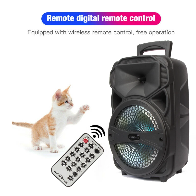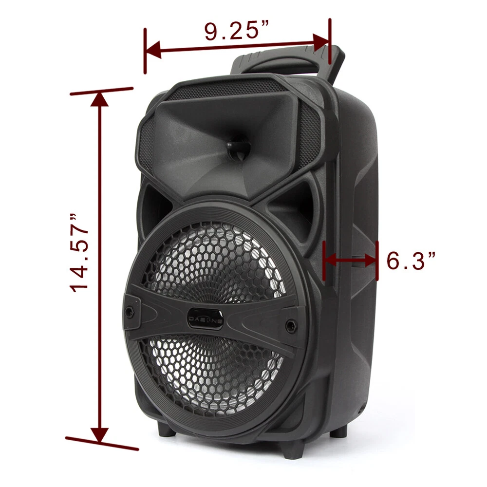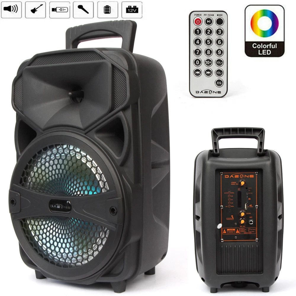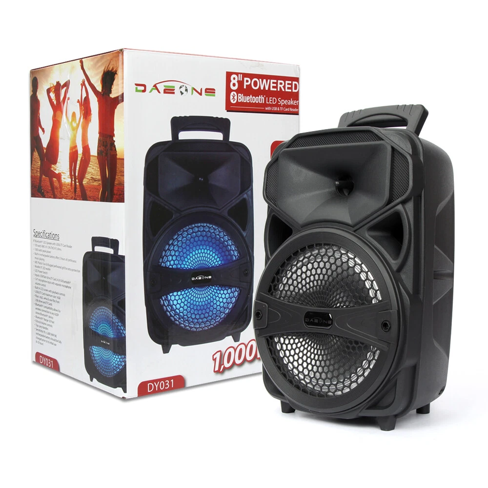 1000W Portable Wireless bluetooth Speaker Super Bass Stereo Radio FM TF AUX USB Feature: -Bluetooth 5.0 chip, more stable connection and lower consumption. -LED light display, fashionable and cool appearance. -Multiple connection modes, support bluetooth, TF card, radio input. -Portable design, with wired microphone, easy to carry with you. Specification: Product Name: bluetooth Speaker Model: DY031 Speaker: 8inch Size: 9.3*6.3*14.6 inches(L*W*H) Color: Black Material: Plastic bluetooth Version: V5.0 Input: 10W Battery Capacity: 2400mAh Function: USB/TF Card/Radio/bluetooth/LED Light Package Includes: 1 x bluetooth Speaker 1 x Charging Cable 1 x Remote Control Note: -The color of the item may vary slightly due to photography and different PC monitor. -The size might be slightly different due to manual measurement. Your kindly understanding would be appreciated. Shipping Payment Return and Refund Policy Feedback Help - Customer Support - Contac Shipping FREE SAME BUSINESS DAY MONDAY- FRIDAY SHIPPING FROM USA. No shipping on Weekends or US Public Holidays. No responsibility for any custom duty We will ship your order to your PayPal Verified address provided. Please verify your address and make sure that it is your current address before making your payment. Any address change requests after your payment CANNOT be guaranteed. Shipping information will be updated when available. All of our products can be shipped internationally. To confirm the shipping rates to your country please refer to eBay's Shipping Tab above. Any brokerage, customs, and duty fees associated with international shipments are the customer's responsibility and are not included in our shipping fee. A phone number is required for the customs documents. Failure to provide one will result in delays. We do not include an invoice or any advertising materials with our shipments. Payment Immediate payment is required. Shipping will be arranged within 1 business day once payment is cleared. To uphold a shipping speed, your order will be processed almost immediately. If you change your mind after your payment is confirmed, we will do our best to cancel the order, however, we CANNOT guarantee the cancellation. Return and Refund Policy 1. We stand behind our items and offer 30 days warranty . All items are in new and working condition unless specified otherwise elsewhere in the description. 2. All Returns - defective or otherwise - MUST BE PREAUTHORIZED to guarantee refund or exchange. Please contact us to get an authorization and return address. 3. Buyer agrees to pay for the cost of re-shipment for undeliverable or wrong addresses. 4. Buyer is responsible for Return Postage as well as a 20% restocking fee if return/replacement is not a result of our mistake such as wrong item. 5. Replacement or Refund will be made upon receipt of the returned item. Please include tracking number so we can process ASAP. If you do not wish to wait for a replacement, please repurchase the item. 6. ALL REFUNDS will be processed via PayPal. Please double check via PayPal history and transaction for confirmation. PayPal will send it back to whatever you used to pay within 3-5 days. Feedback We strive to provide the best products and services. Your positive feedback 5 stars DSR help us do better. If anything about your transaction did not meet expectations, please CONTACT US and give us the opportunity to make things right. We are always here to help. Help - Customer Support - Contac Please do not hesitate to CONTACT US . You can message 24/7 on eBay for all questions and inquiries. We will get back to you within 1-2 business days at the latest.