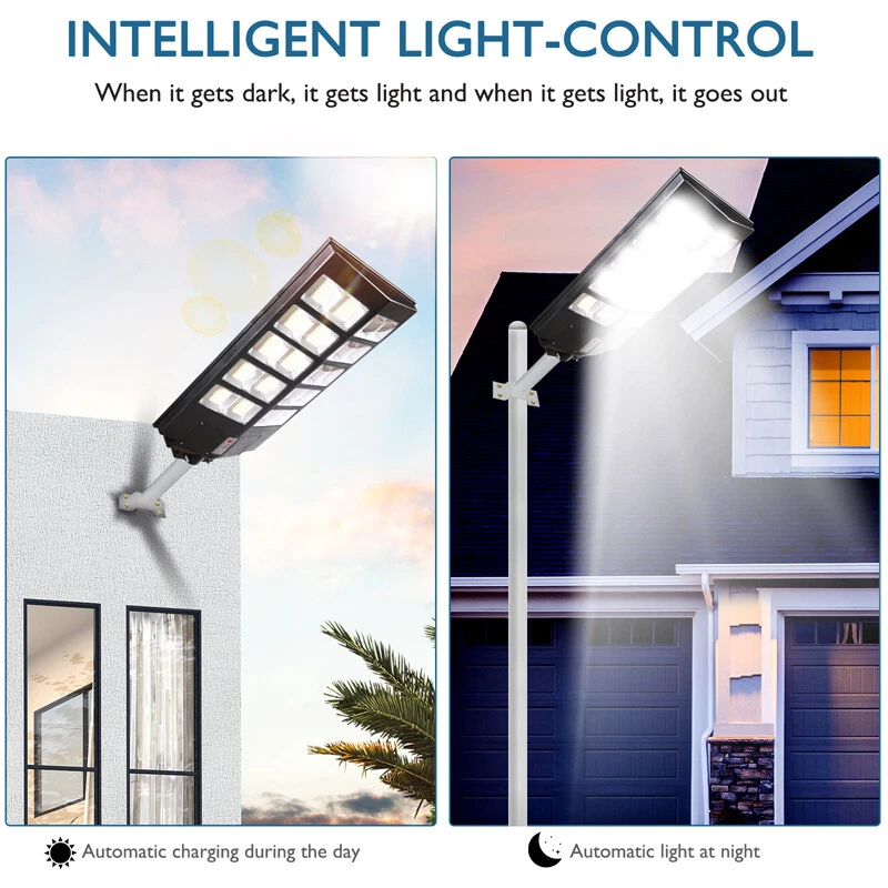 800LED 1000W Commercial Super Large Solar Street Lights Outdoor Dusk to Dawn Solar Lights LED Solar Powered Motion Sensor Human body sensing & radar sensing Wall Lamp Street lamp IP67 Waterproof with Remote Control BLACK 1000W 800 Lamp beads Feature: -Solar power& environmental protection: Solar panels convert solar energy into electricity.NO wires,easy to install.Big capacity battery can save up to 100% electricity. -Ip67 Waterproof & Anti-corrosion : Made of good quality durable ABS material and can be used in outdoor for any bad weather conditions. The working temperature is -50℉-140℉. - Light Control &Remote Control: LED solar flood light will automatically turn on at dusk and turn off at dawn.Remote control functions including 2h/3h/5h/6h/8h setting ,25%/75%/50%/100% brightness. -Super Bright: Imported LED lamp bead light source.Two-way lamp beads wide-angle lighting The brightness is several times higher than traditional light bulbs. -Human body sensing & radar sensing: The light is bright when there are people, and the light is slightly bright when there are no people -Safe to use: Built-in protection circuit for long life. -Multiple installation methods: Pole-mounted and wall-mounted which can be installed on light poles/walls/small diameter cylinders . -Widely Application: Outdoor wall or pole in Plaza, Park, Garden, Courtyard, Street, Walkway, Pathway,Campus, Farm, Perimeter Security and etc. Specification : Wattage: 1000W Fully charged lighting: 20 hours Solar panel: 6V/30W Battery capacity: 3.2V 30AH Product function: radar + light control + remote control Lamp body size: (H*W*L)68*8.5*35cm/26.77*3.35*13.78inch Lamp beads: 800 Irradiation area: 250 square meters Installation height: 4-6m Material: ABS engineering plastic PC cover Waterproof :IP67 Remote control :Normal light or induction mode Remote control battery type: 2*AAA (not included) Life: 100000 (h) Installation Instructions: 1. Please link the shell and light pole of the street light with which is installed on the shell with hex key. 2. Please bore the hole into the wall. 3 .Please tighten the nut with a hex wrench and secure it Package including: Solar Street Lights *1 Remote control*1 Payment Delivery details Terms of sales About us Contact us Payment Payments: Paypal, Google Pay, Visa, Master Card, Amerian Express, Discover. Delivery details All items are shipped from US warehouse located at NJ . We ship to your eBay or Paypal address. Please make sure your eBay or Paypal address is correct before you pay. Terms of sales Free return About us Pls contact our customer service firstly if have any problems , we will help to solve the issue, and could offer free return service for full refund or free replacement after confirming. You can buy from us with confidence Contact us If have any problems, please feel free to contact us.
