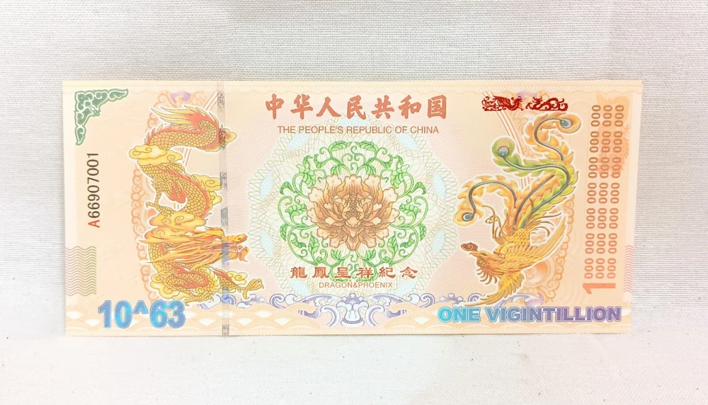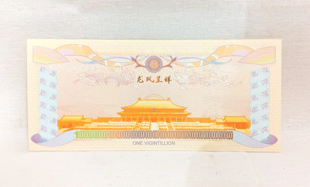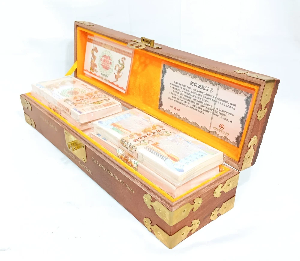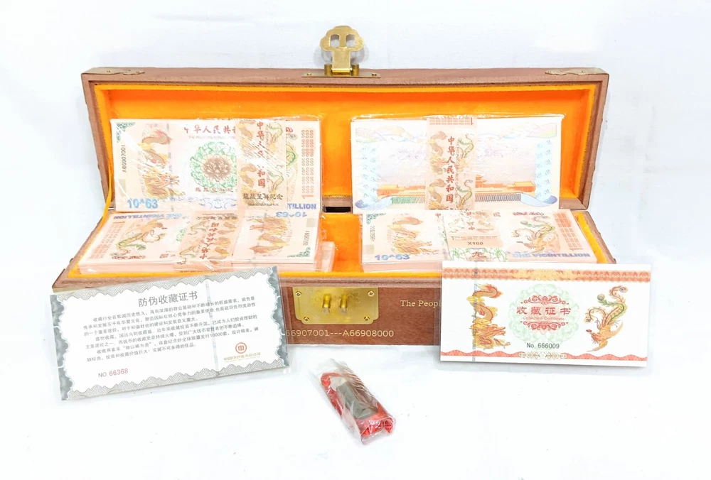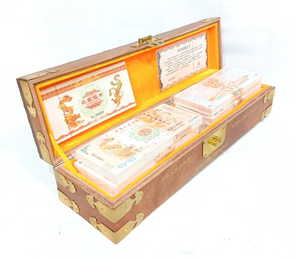 1000pcs 1 Vigintillion China Yellow Dragon Paper Note with Dragon Wood Box