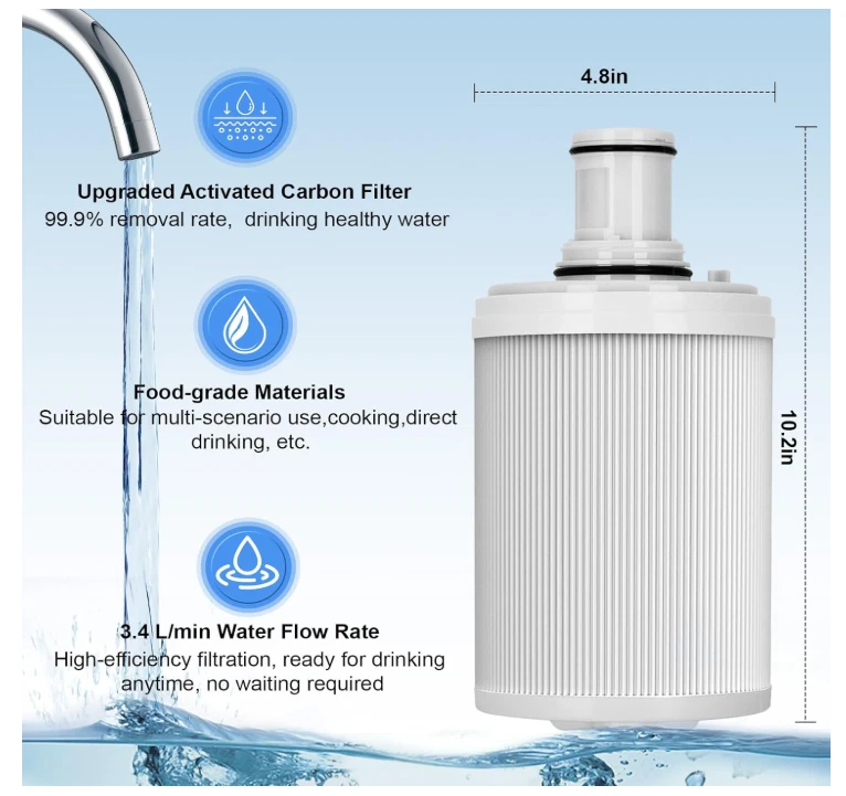 Perfect Compatibility:The 100186-water filter cartridge is compatible with A mway water filter, making it a superior choice for replacing original components. It ensures optimal performance and provides clean and safe drinking water. 6-Level Filtration:The combination of filter mesh, non-woven fabric and activated carbon can effectively adsorbs 0.2μm impurities such as odors, residual chlorine, lead, mercury in water, providing a six-layer protection for your and your family's health. Retain Beneficial Minerals: The unique filtration system can effectively retain beneficial minerals such as calcium and zinc in water while filtering out impurities, making drinking water safer. Easy to Replace: Easily remove the old filter element and replace it with a new one. We have included detailed replacement instructions with the product to ensure you can install it easily. Durability and Reliability: Each filter cartridge lasts up to one year or 5000 liters, providing healthy water quality. We recommend that you replace the filter cartridge once a year to maintain good water quality.