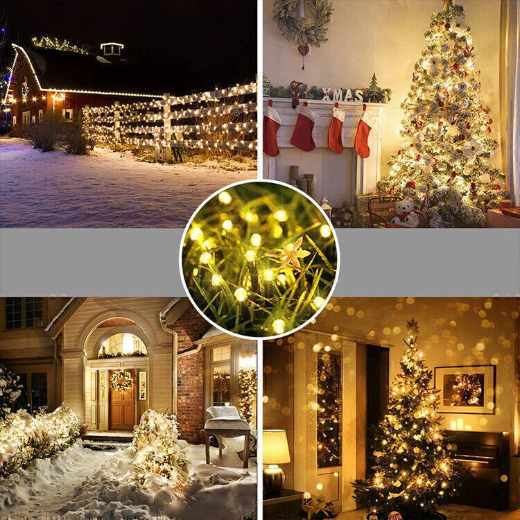 Product Description If you have any questions, please contact customer service first, do not open disputes easily, thank you! Feature: Eco-friendly Christmas Lights - solar powered string lights is energy saving, the fairy lights is durable and safe to use; Take the plastic on solar panel then make sure it face to sun directly and a completely dark environment can make the lights work more 1:Waterproof, perfect for outdoor and indoor decoration. 2:Charging time in sunshine: more than 8 hours 3:LED light can keep glowing for about 8 hours a night after fully charged during the day. Occasion:Garden/Lawn/Yard/Fence/Stair/Pathway/Garden/Terrace/Backyard/Balcony Application: Christmas/Wedding/Party/Xmas/New Year/Halloween Specifications: Color: Cool White,Warm White,Multi Color Protection class :Waterproof Power: Solar LED quantity: 100 LED /200 LED Modes: 8 Light Modes Package: 1 x solar power lights 1 x Stake connector 1 x Pointed stake 1 x Operation instructions About Us We accept all payments authorized by eBay. powered by