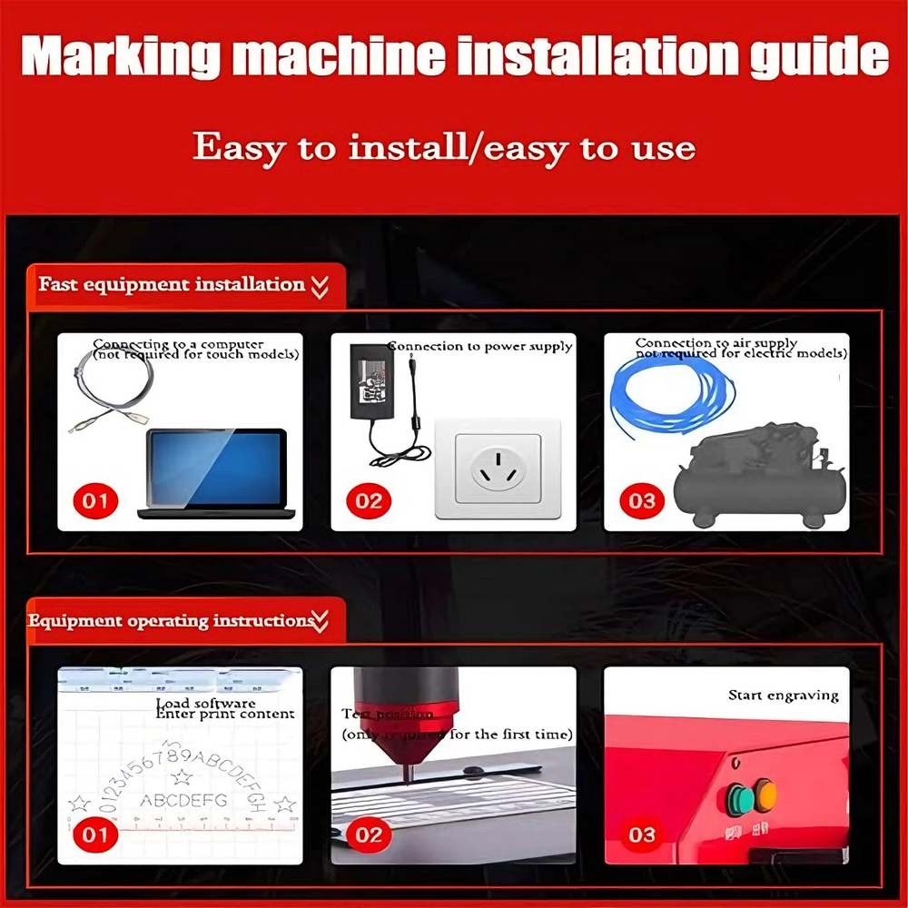 Product Description Feature 【Portable Pneumatic Marking Machine】The powerful scribing marking system and the carbide marking needle enable the pneumatic marking machine to mark deeper and the marking effect is clear. Offers mobility, extremely low noise levels and deep indentations for marking large metal parts. 【Product Parameters】Industrial pneumatic engraving and marking machine, marking depth: 0.01-1mm (depending on the material); It is suitable for various frame numbers, steel structures, large workpieces, etc. 【Multi-board configuration】Industrial-grade expensive multi-board machine, multi-board configuration, strong performance, smooth marking, no steps, solid material, and low failure rate. 【Pure Copper Motor】Pure copper motor, industrial-grade all-copper motor, ultra-high precision, no error. Non-integrated motherboard, strong stability. Four-way double guide rails, long service life. 【Application】This model is widely used to mark characters, letters, serial numbers and VIN codes on motorcycle bodies, connecting rods, engines, steel pipes, cylinders, cylinders and other stepping motors and mechanical parts, machine tools, metal pipes, pump bodies, valves, fasteners and various hard plastic products. Specification Marking Range: 100*20mm Air supply pressure: 0.2Mpa-0.6Mpa Marking depth: 0.1-1mm (depending on material), adjustable depth Customer-prepared: Computer + air pump Marking speed: Approximately 1 character per second (adjustable speed) Voltage: 110V 220V Power: 200W Packaging includes 1 * Marking Machine Payment Policy Shipping Policy Returns Policy About us Payment Policy NOTE: Import duties, taxes and chargers are not included in the item price or shipping charges. These charges are the buyer's responsibility. Please check with y our country's customs o ffice to determine what these additional costs will be prior to bidding buying. Shipping Policy 1. We Ship to Worldwide. 2. Item are shipped from S henzhen using Airmail, reach most of the countries within 10 to 35. 3. Delivery time depends on destination and other factors, it may takes up to 40 business days. 4. We are not responsible for undeli verable address, we reserve the right to charge the shipping fee again for returned items due to wrong address. Returns Policy 1. All Returned items Must Be in the original packaging and you MUST PROVIDE us with the shipping tracking number, specific reason for the return,and your ebay ID. 2. We will refund YOUR FULL WINNING BID AMOUNT, upon receipt of the item in its original condition and packaging with all components and acc essories included, AFTER BOTH Buyer and Seller cancel the transaction form ebay. OR, you may choose to have a replacement. 3. Return shipping is to be bear by the Buyer. About us 1. We greatly appreciate your POSITIVE feedback. Please do NOT leave negative feedback without asking for help. Our aim is to provide Top Level Customer Service, normally so we will try our best to solve any problem you have. 2. Please DON'T leave negative or neutral feed back if you haven't received item in 30 days, because we have mentioned the shipping time repeatedly. Copyright © 2023 Dianxiaomi