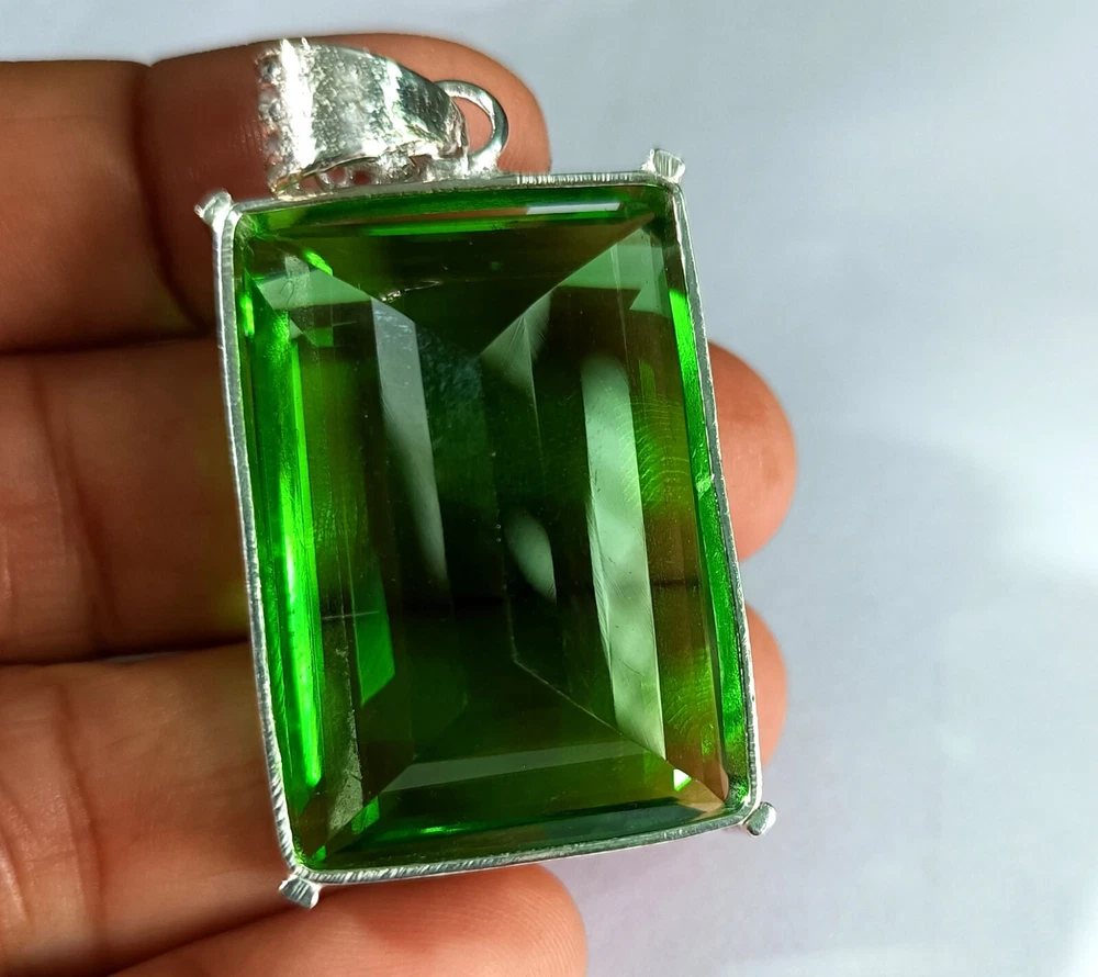 925 Sterling Silver Handmade Emerald Bezel Pendant Jewelry