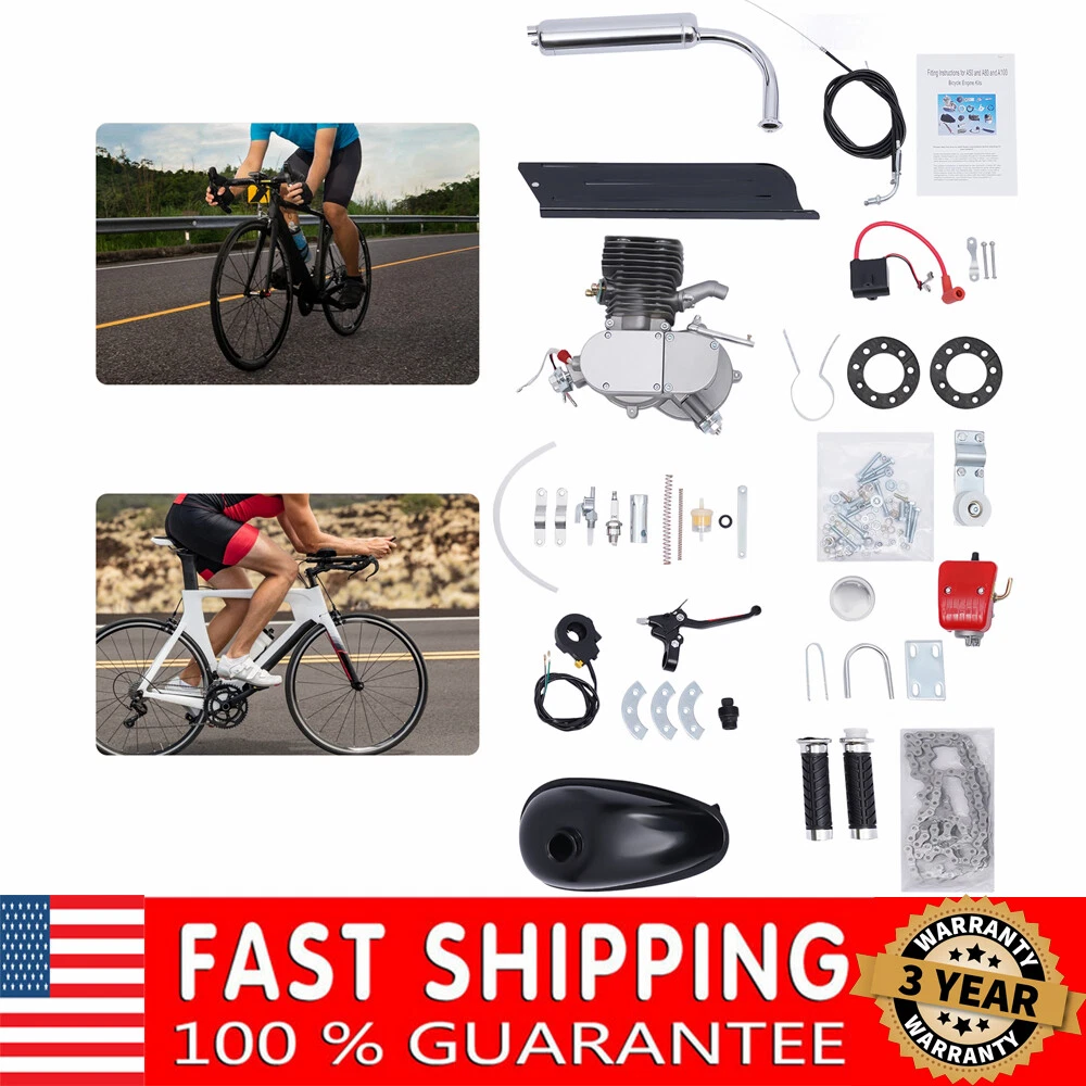 Description Perhaps you are an outdoor enthusiast who enjoys cycling in parks or mountains, are ordinary bicycles can no longer meet your need for excitement? Let's take a look at our bicycle engine kit! Through installation, it can give your bicycle the speed and excitement of a motorcycle, allowing you to go further in one ride and explore stunning scenery that you have never seen or experienced before! Take our bicycle engine kit home and embark on a more exciting outdoor cycling experience! Key Features Bicycles into Motorcycles: A two-stroke bicycle gasoline engine can convert a regular bicycle into a motorcycle, allowing you to enjoy faster riding speed and a more exciting life! High Speed: The 2-stroke 100CC engine is powerful and durable, accelerating your bike to a maximum speed 100CC Full Set Bicycle Motor Kit Bike Motorized 2Stroke Petrol Gas Engine Set Welcome~ Description Perhaps you are an outdoor enthusiast who enjoys cycling in parks or mountains, are ordinary bicycles can no longer meet your need for excitement? Let's take a look at our bicycle engine kit! Through installation, it can give your bicycle the speed and excitement of a motorcycle, allowing you to go further in one ride and explore stunning scenery that you have never seen or experienced before! Take our bicycle engine kit home and embark on a more exciting outdoor cycling experience! Key Features Bicycles into Motorcycles: A two-stroke bicycle gasoline engine can convert a regular bicycle into a motorcycle, allowing you to enjoy faster riding speed and a more exciting life! High Speed: The 2-stroke 100CC engine is powerful and durable, accelerating your bike to a maximum speed of 28mi/h and allowing you to experience the convenience of reaching your destination faster and easier. Large Fuel Tank: A fuel tank with a capacity of up to 0.53gal supports longer journeys at once, and fuel consumption of around 0.66gal/100 km also reduces the hassle of frequent refueling. High Loading Capacity: It can withstand a maximum weight of 440 lbs, and you can confidently install it on your bicycle and ride with it. Complete Kit: Our package includes all the parts to convert your bicycle into a motorcycle, meeting your needs with just one purchase! Durable and Sturdy: The aluminum engine body, iron fuel tank, and iron chain have better durability, and when combined with sandblasting, painting, and shot blasting treatment, they can provide stable operation for a long time. Quiet Operation: When in use, this bicycle engine kit only has slight noise (around 75DB) and vibration. You can use it in most outdoor environments without worrying about noise disturbance. Economically Friendly: You can enjoy the speed and passion comparable to motorcycles at a lower price! This bicycle engine kit is more suitable for people with lower budgets or only short-term needs for motorcycles. Details Black Fuel Tank: The black fuel tank can effectively block the evaporation caused by sunlight on the fuel. Rounded Corners: The various components treated with rounded corners take better care of your skin, so you don't have to worry about accidentally causing scratches during cycling. Application This product is suitable for most 26-inch or 28-inch bicycles with V-shaped frames and large triangular empty frames, such as mountain bikes, road bikes, gravel bikes, beach bikes, etc. Specifications Material: Aluminum, Iron Color: Black, Red, Silver Style: Modern Surface Treatment: Sandblasting, Painting, Rust Prevention Shot Blasting Assembly Required: Yes Displacement: 100CC Number of Teeth: 36 Mode of Engine: Single Cylinder, Air-cooling, 2-stroke Ignition Mode: CDI Maximum Speed: 45km/28mi/h Fuel Tank Capacity: 2L/0.53gal Fuel Consumption: 2.5L/0.66gal/100km Max. Load Capacity: 200kg/440lbs Noise: About 75 decibels Fuel Number: #92, #95 Fuel Type: Mixed Fuel(16 Gasoline: 1 Two-stroke Engine Oil During Break-in Period, 20 Gasoline: 1 Two-stroke Engine Oil After) Gross Weight: 10.85kg/23.9lbs Net Weight: 9.75kg/21.5lbs Chain Guard: 41*7.7cm/16.14*3.03in Carburetor Size: 7*12cm/2.75*4.72in Fuel Tank Size: 31*18*15cm/12.2*7.08*5.9in Gear Diameter: 15cm/5.9in Engine Size: 22.5*21.5cm/8.85*8.46in Package Size: 42*42*20cm/16.53*16.53*7.87in Package Included 1*Bicycle Engine Kit 1*English Manual All Accessories for Assembly Notes Please carefully read the manual and strictly follow the precautions to have a better experience. Please note that professional installation is recommended. Please note that this product requires the use of a mixture of gasoline and engine oil. During the first 500-kilometer break-in period, the ratio of gasoline to engine oil is 16:1, and after the break-in period, the ratio increases to 20:1. Please note that during the running-in period, the speed should not exceed 20km/h. After the first 500 kilometers, the speed may increase to 35 kilometers per hour. Please note that this product requires the use of advanced two-stroke motorcycle oil to ensure proper lubrication of the engine. Please note that before adding fuel to the tank, make sure to mix fuel and engine oil, and do not add them separately. Due to the need for fuel during the use of this product, please pay attention to fire safety. Please allow the slight color difference caused by the shooting light and 1-3cm error due to manual measurement, and make sure you do not mind before you order. Note: Two-stroke gasoline is a bit noisier and also requires a touch of solid oil between the gears. Please consider before purchase Note: Two-stroke gasoline is a bit noisier and also requires a touch of solid oil between the gears. Please consider before purchase Payment Delivery details Terms of sales About us Contact us Payment We accept ebay payment 。 Fees such as import duties, taxes are not included in the item price or shipping costs. These charges are the buyer's responsibility. Delivery details Shipping: 2-9 working days to: USA Terms of sales We maintain high standards of ex