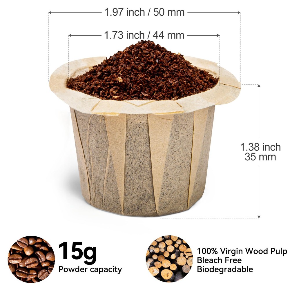 Perfect Fit for Your K Cup Filter: Fit seamlessly into almost all brand K Cup reusable coffee pods (K-Cups are not included, paper coffee filters only) Enhance Your Coffee with Improved Filtration: Made from premium filter paper; Superior circulation; No bursting; Enhanced coffee flavour; Say goodbye to sediment Hassle-Free Cleanup: No mess, no sludge filter, just remove the disposable filter and ready for the next cup! Safe and Compostable: Oxygen cleaned; Bleach free; No chemical residue; Biodegradable and compostable Use Your Own Coffee and Save Money: Use your own favorite coffee; Get a truly personalized brewing experience; Reduce the cost per cup of coffee Patent No. U.S. 10865039